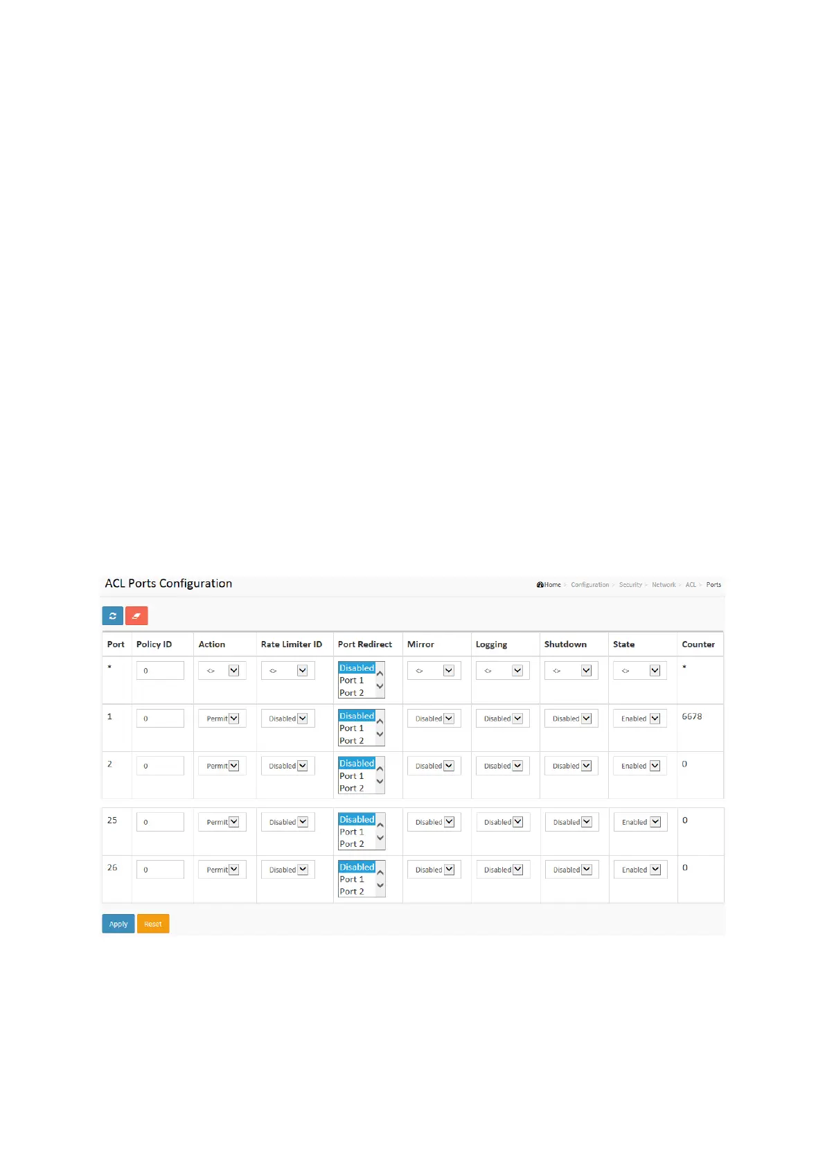 Figure 2-5.2.3.1: The ACL Ports Configuration