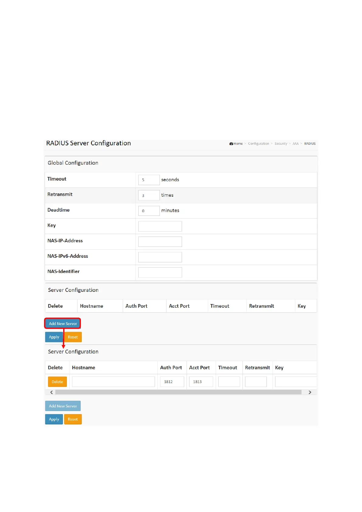 Figure 2-5.3.1: The RADIUS Authentication Server Configuration