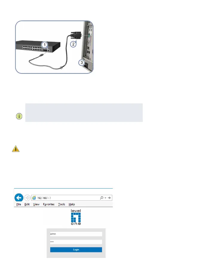 1.Conecte una PC al puerto de la consola del switch utilizando el cable de consola incluido.