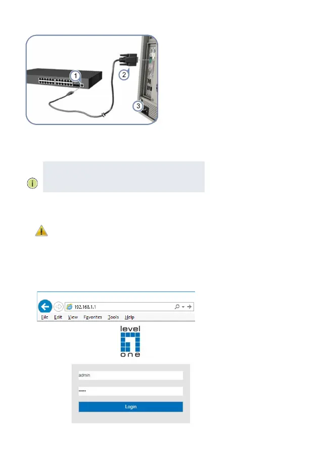 1.Conecte um PC à porta do console do comutador usando o cabo do console incluído.