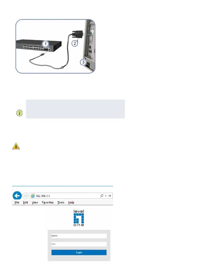 1.Connect a PC to the switch console port using the included console cable.