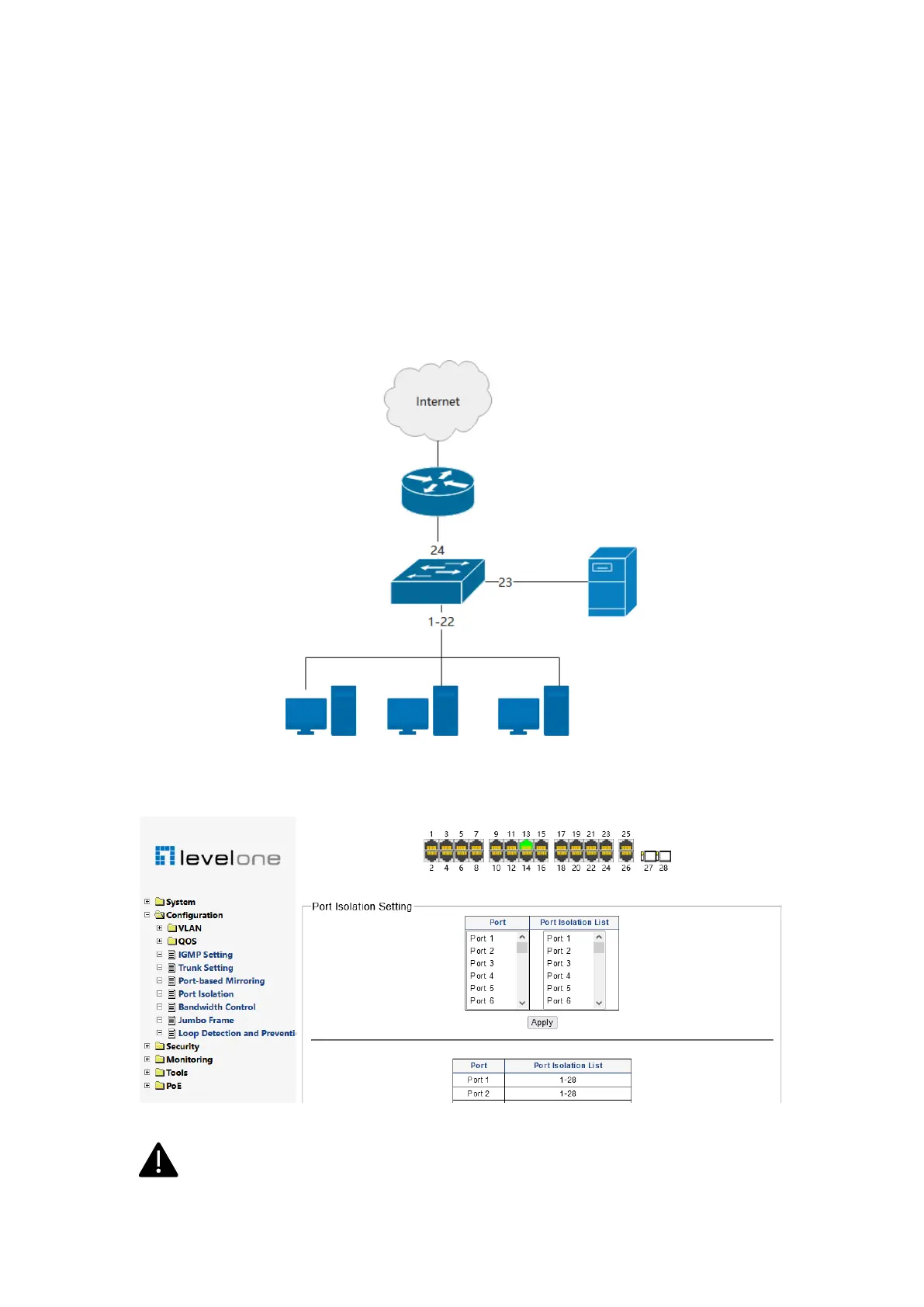 Example: as shown in Figure 3-22, port 24 of the switch is connected to the Internet