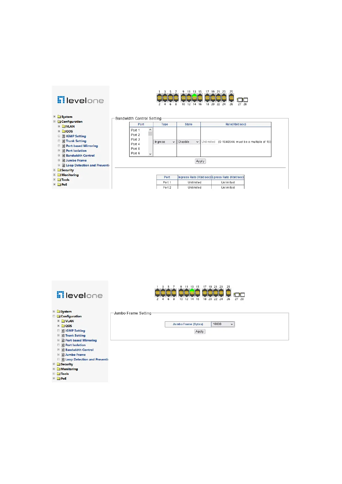 IEEE 802.3 standard. The minimum setting value of this series of switches is 1522 bytes