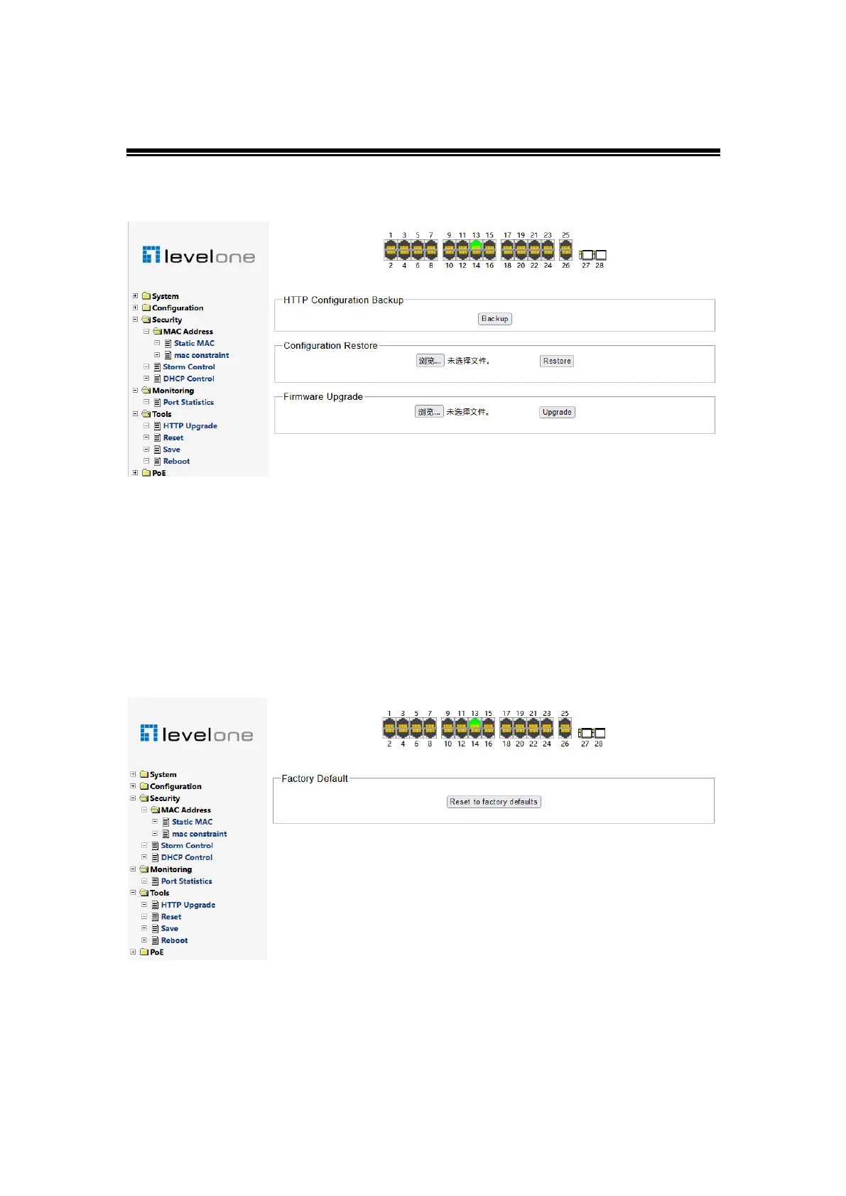 Restore the switch to the factory default setting, click "restore factory value" and restart the