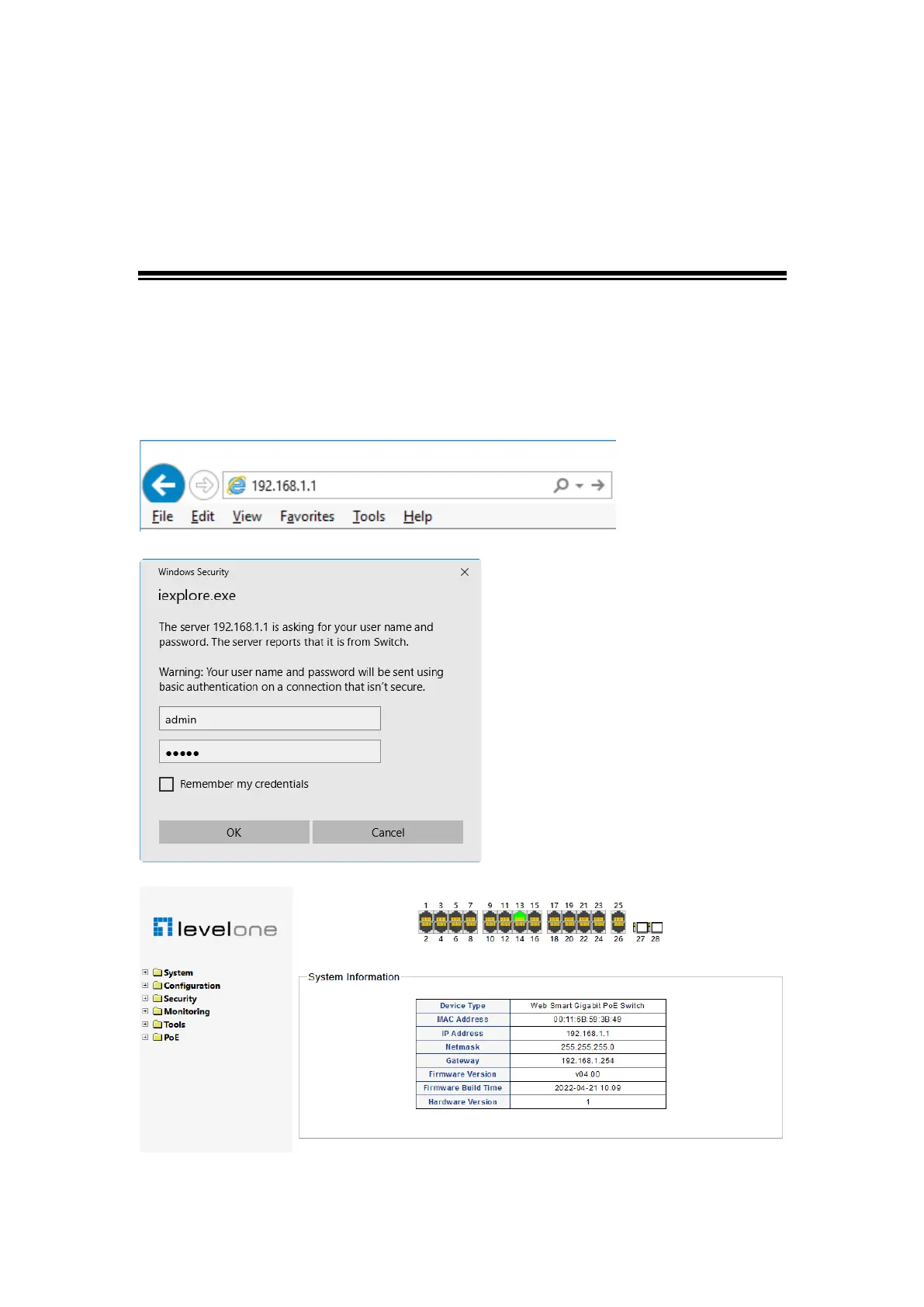 "admin", password "admin" and click OK.