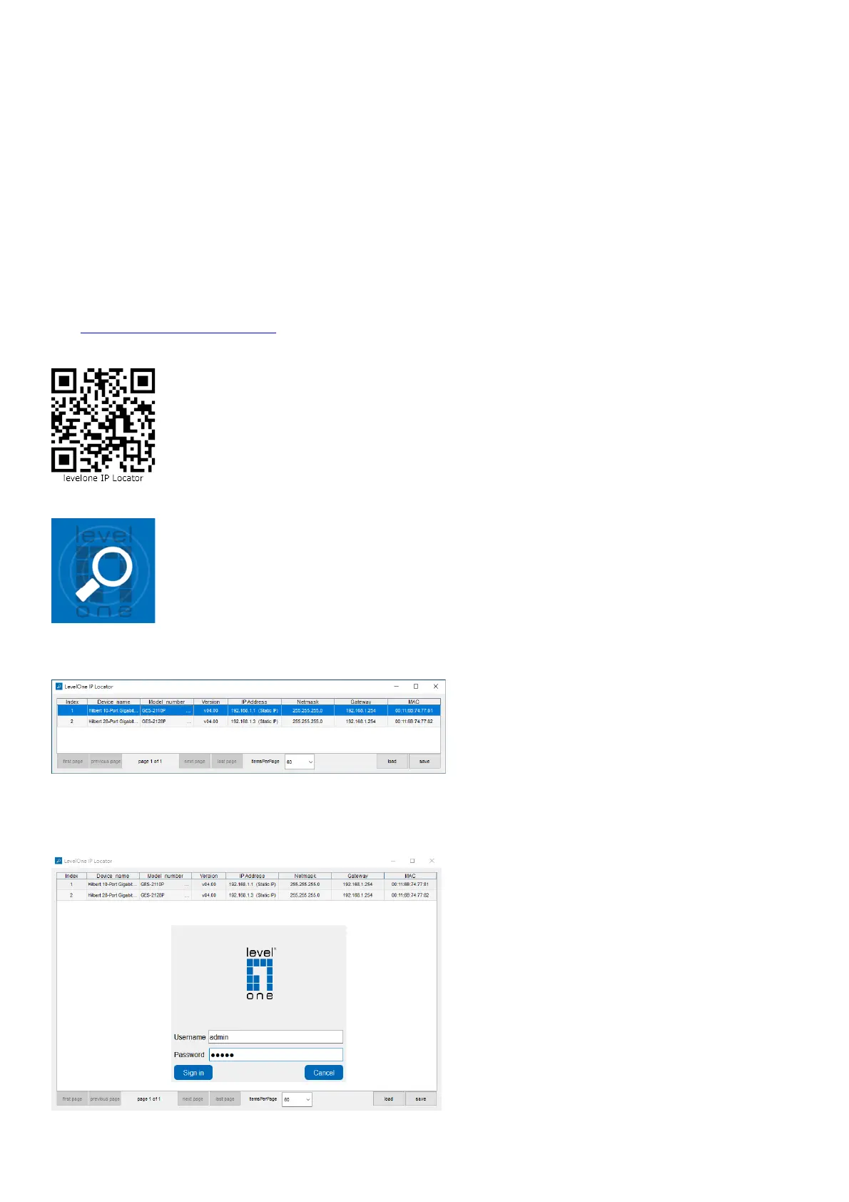 1. Scan the Setup code, download the LevelOne IP Locator and launch it.