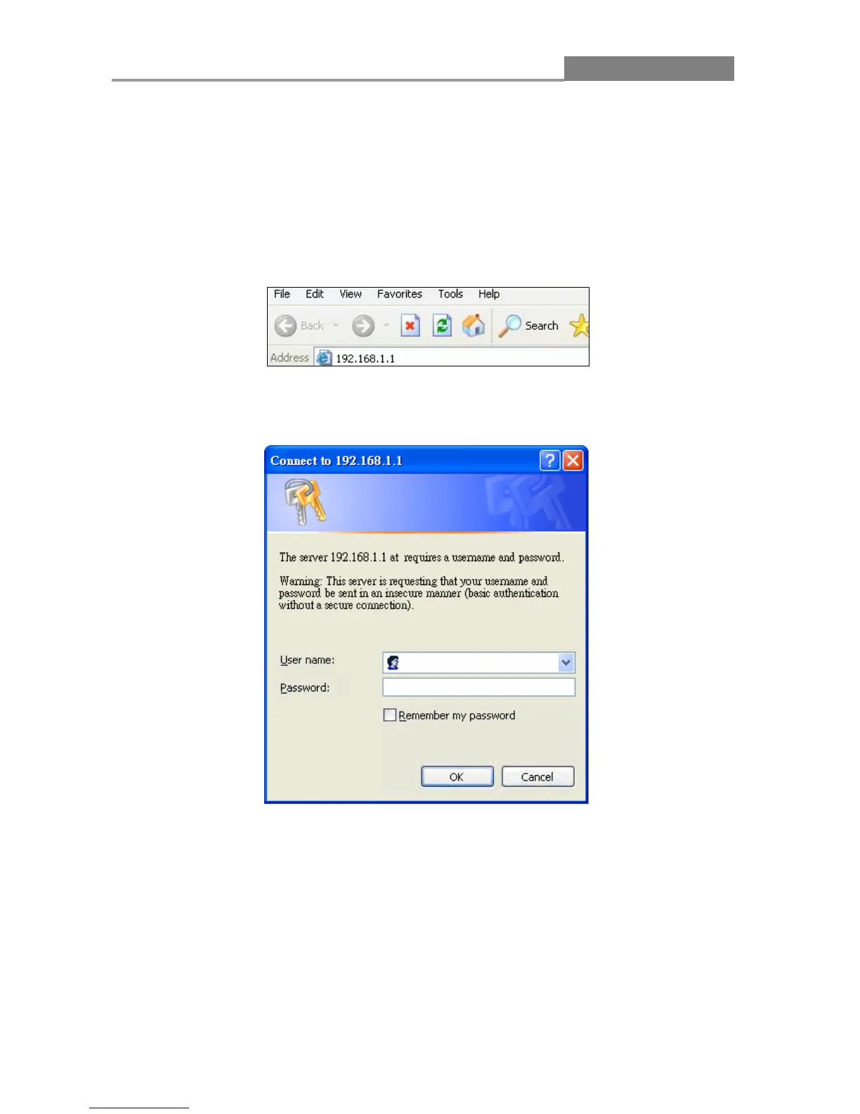 address is 192.168.1.1) in the Location or Address field. Press [ENTER].