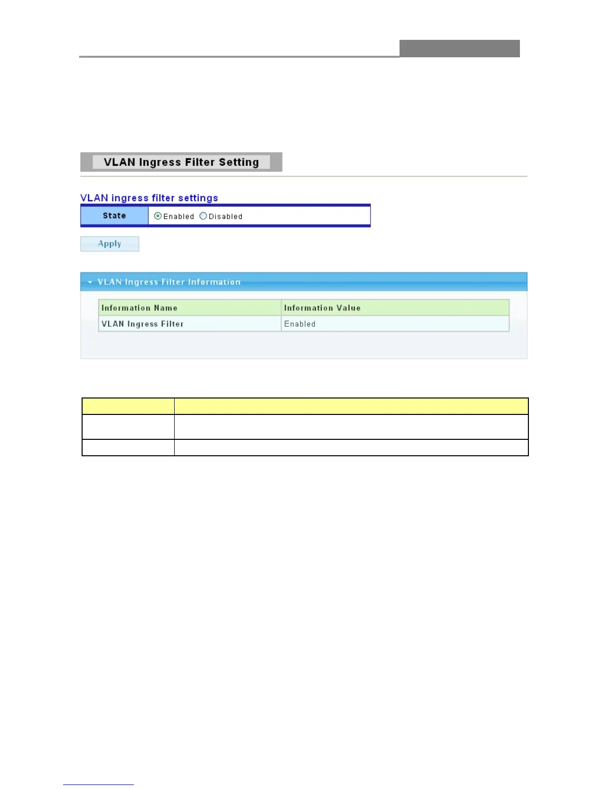 Select Enabled from the drop down box to enable VLAN Ingress Filter.