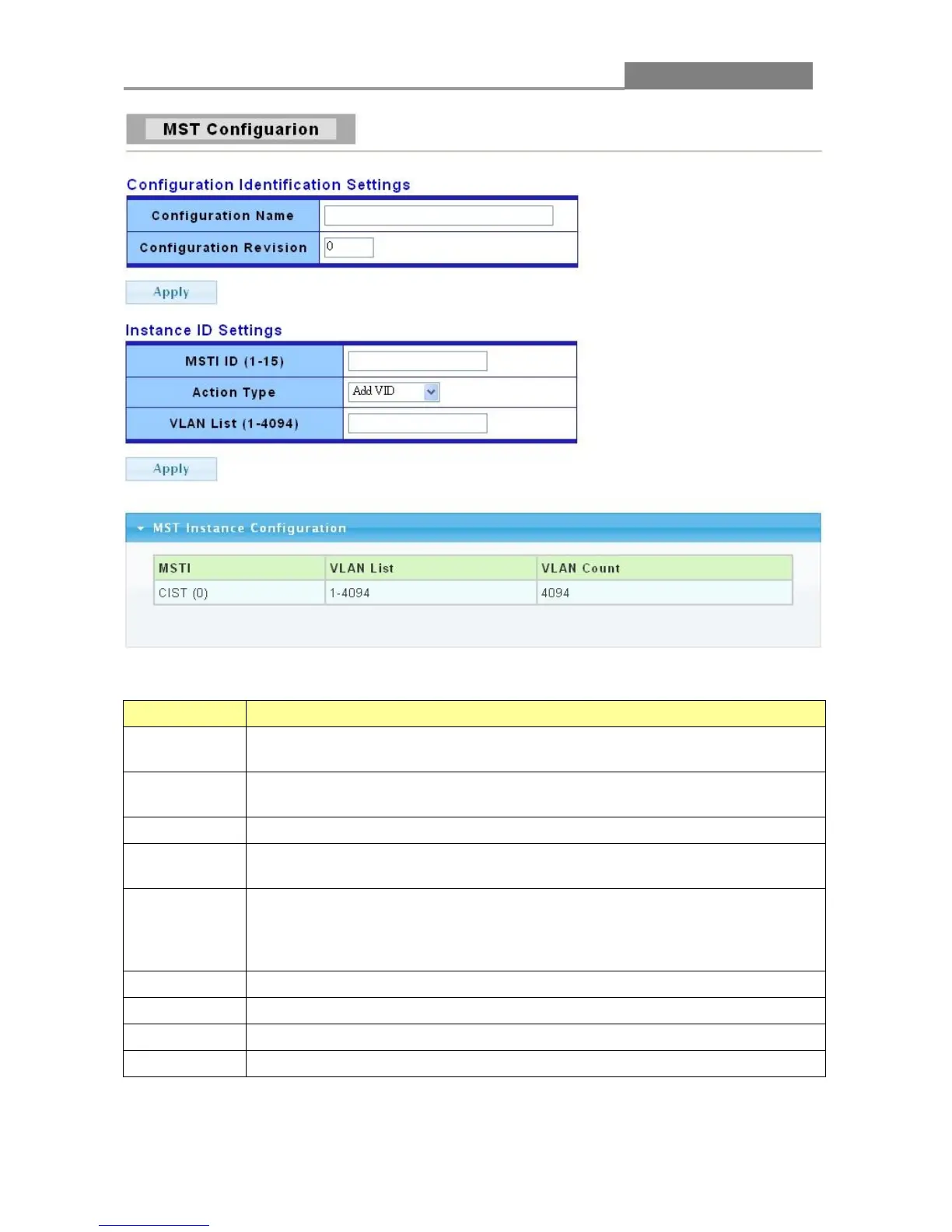 Add VID: Add the VLANs in VLAN list to the specified MST instance.