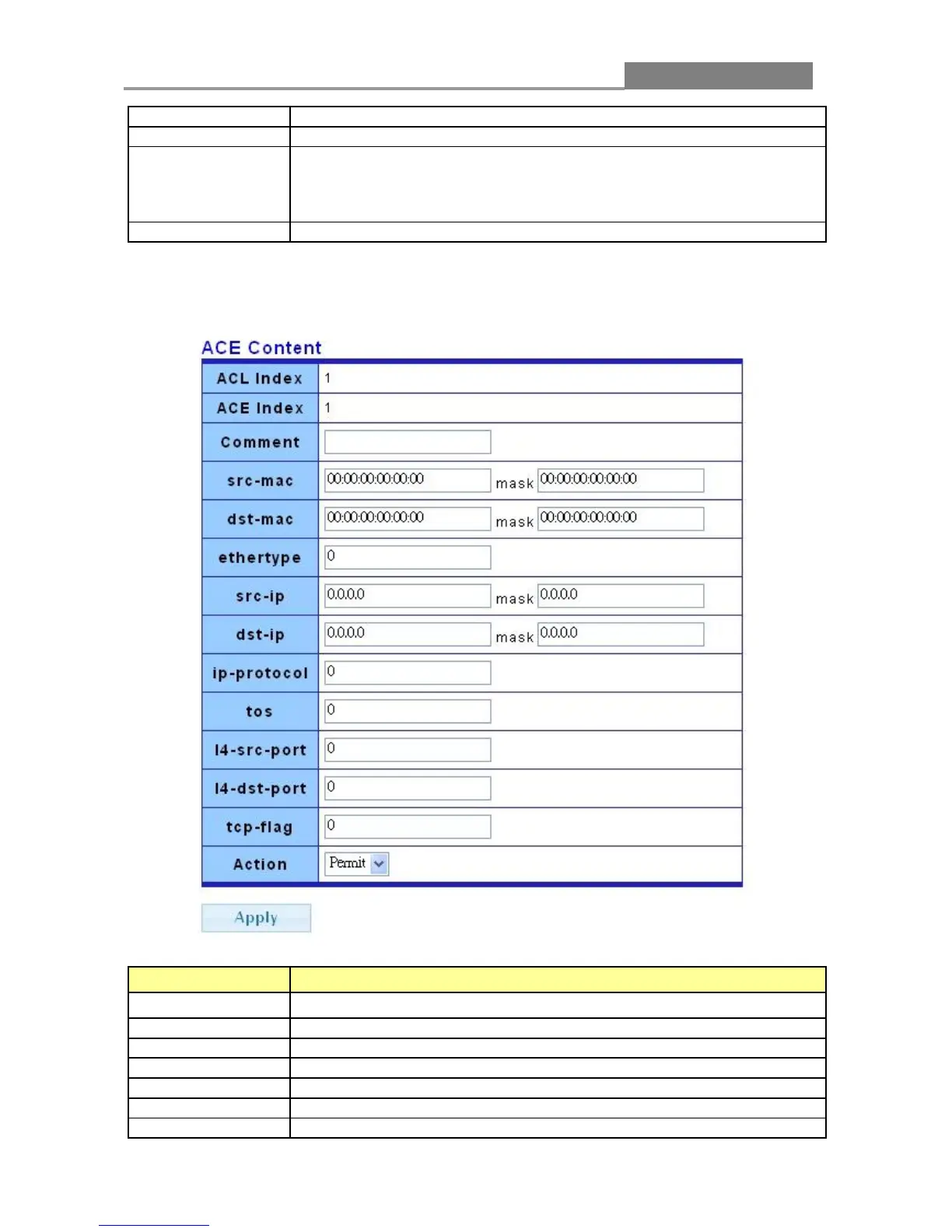 Click ACL->ACL Setting->Add->Add (in ACE Setting) button, the ACE Content web page pops