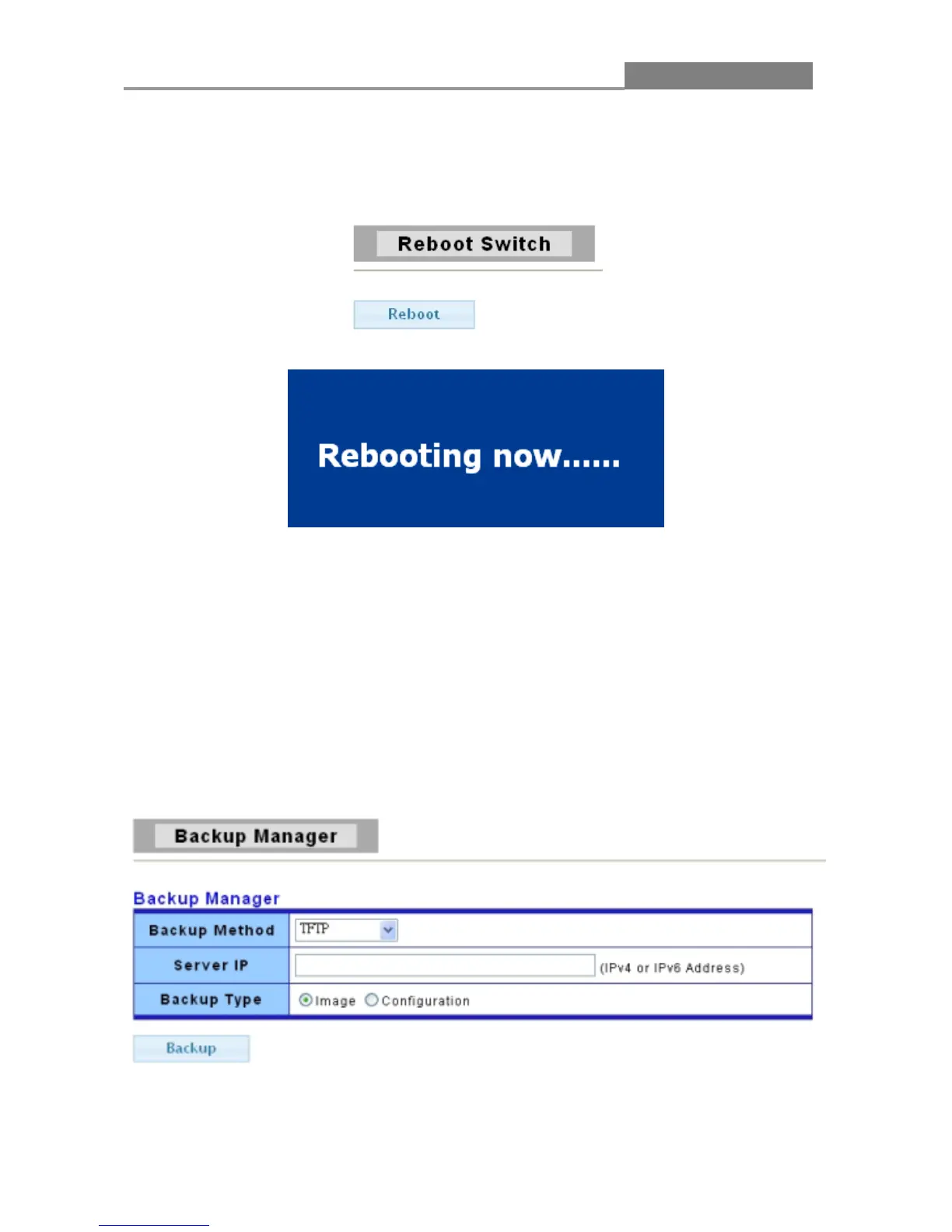 1. Click Diagnostics->Reboot Switch to view the screen as shown next.