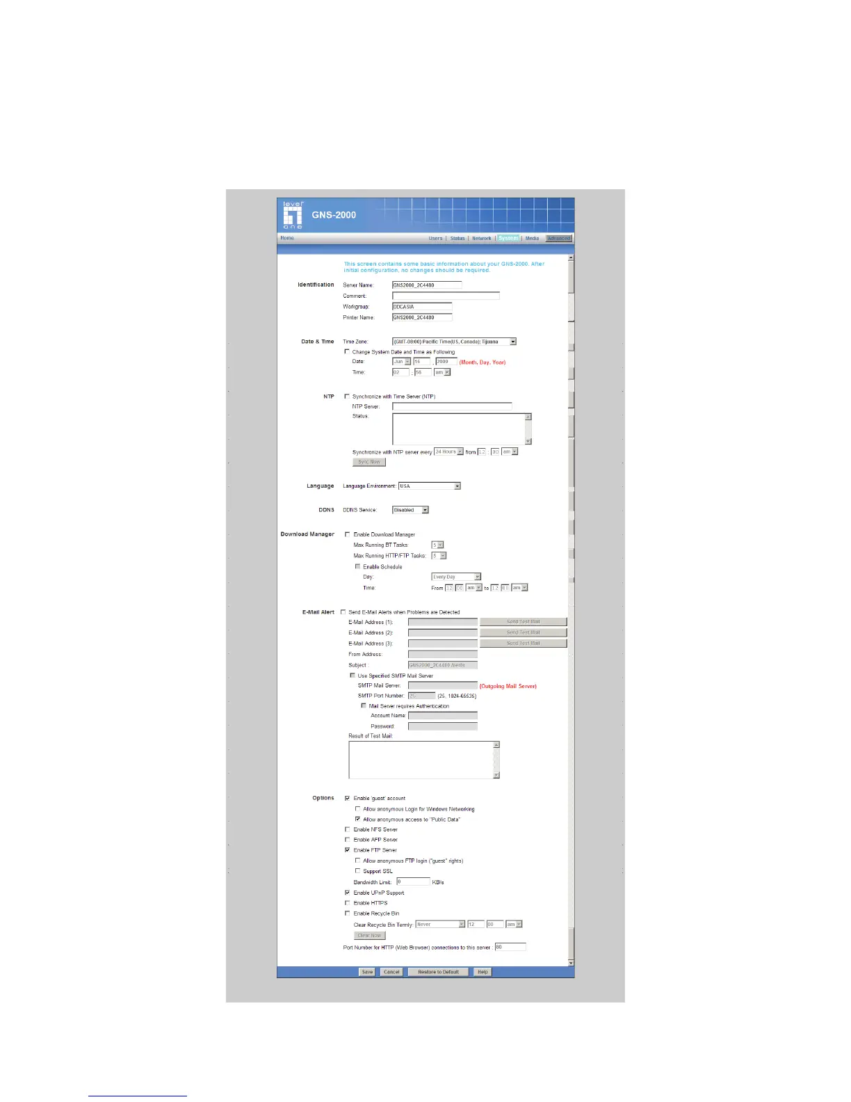 LevelOne GNS-2000 - System Settings; Identification Settings