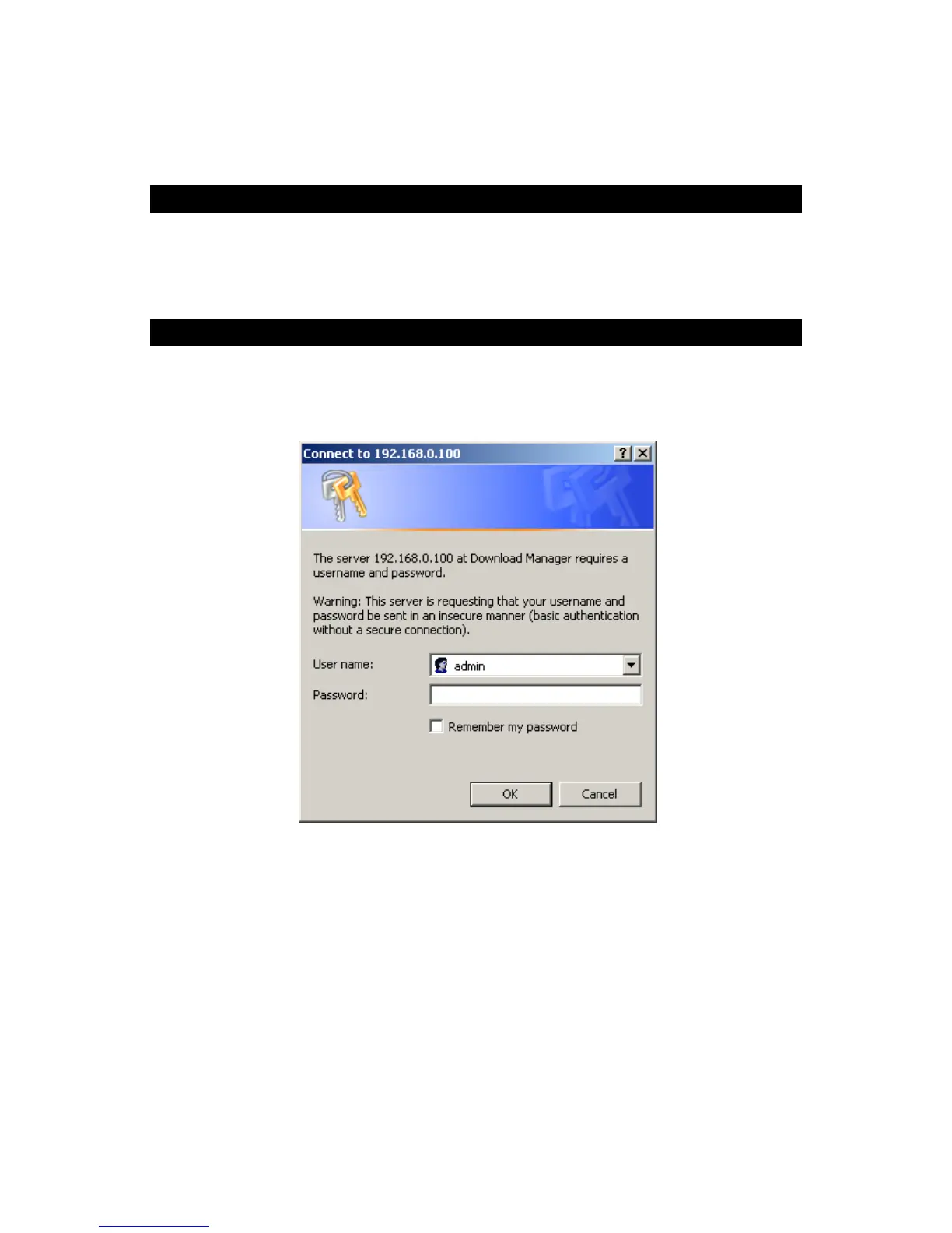 Enter “admin” for the name, and leave the password blank or user ID and password which