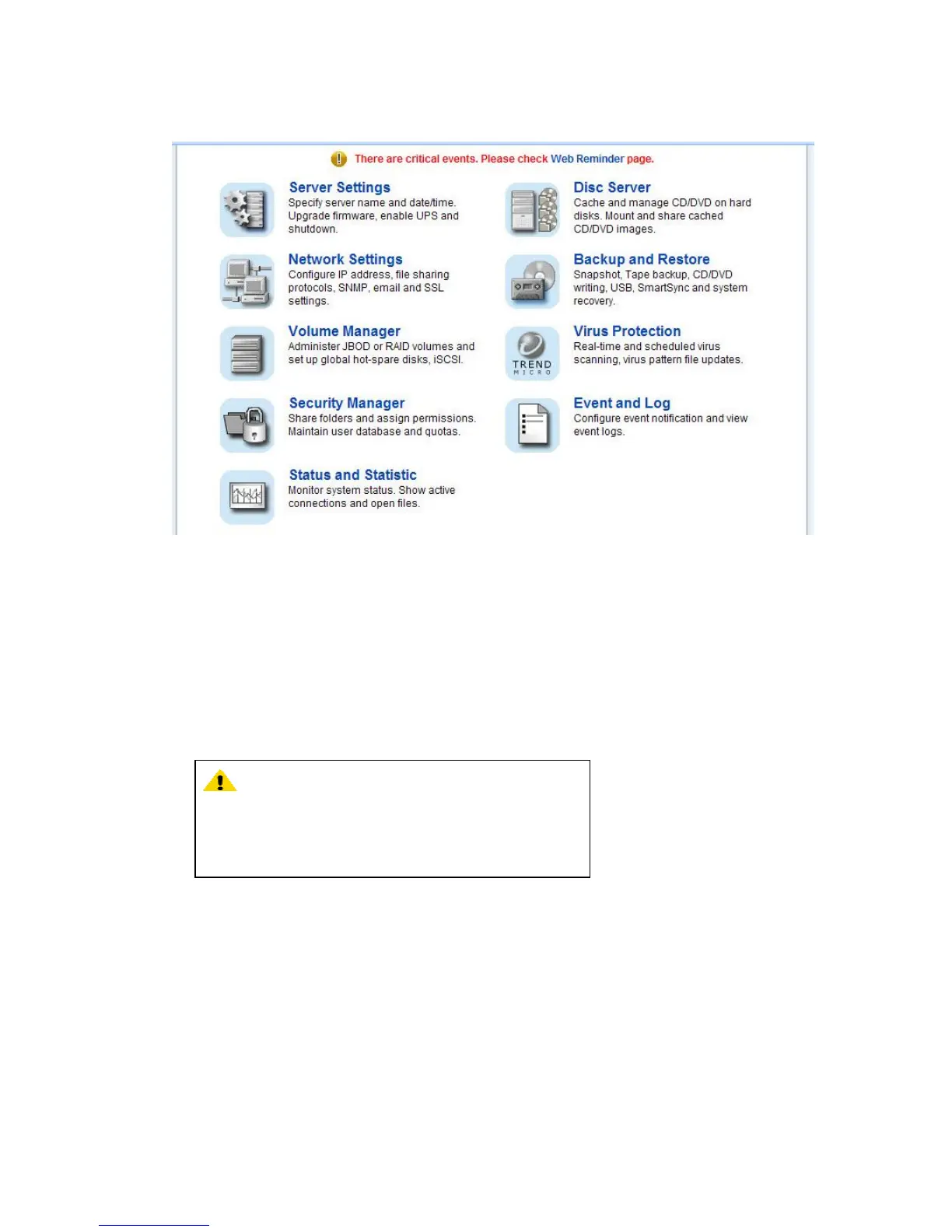 You can configure the detail settings of your NAS server in the administration home page. To access