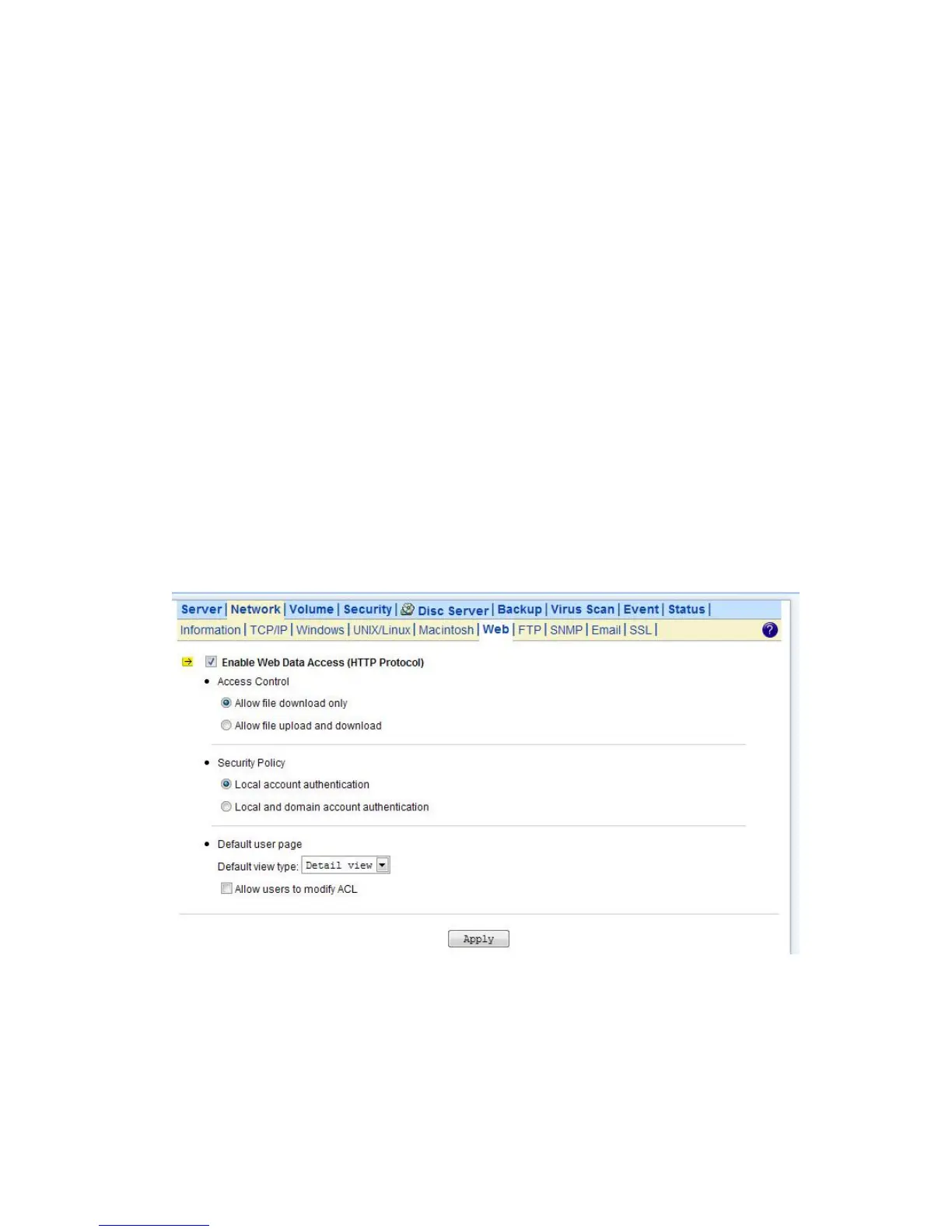 7. Click Apply to save the setting.
