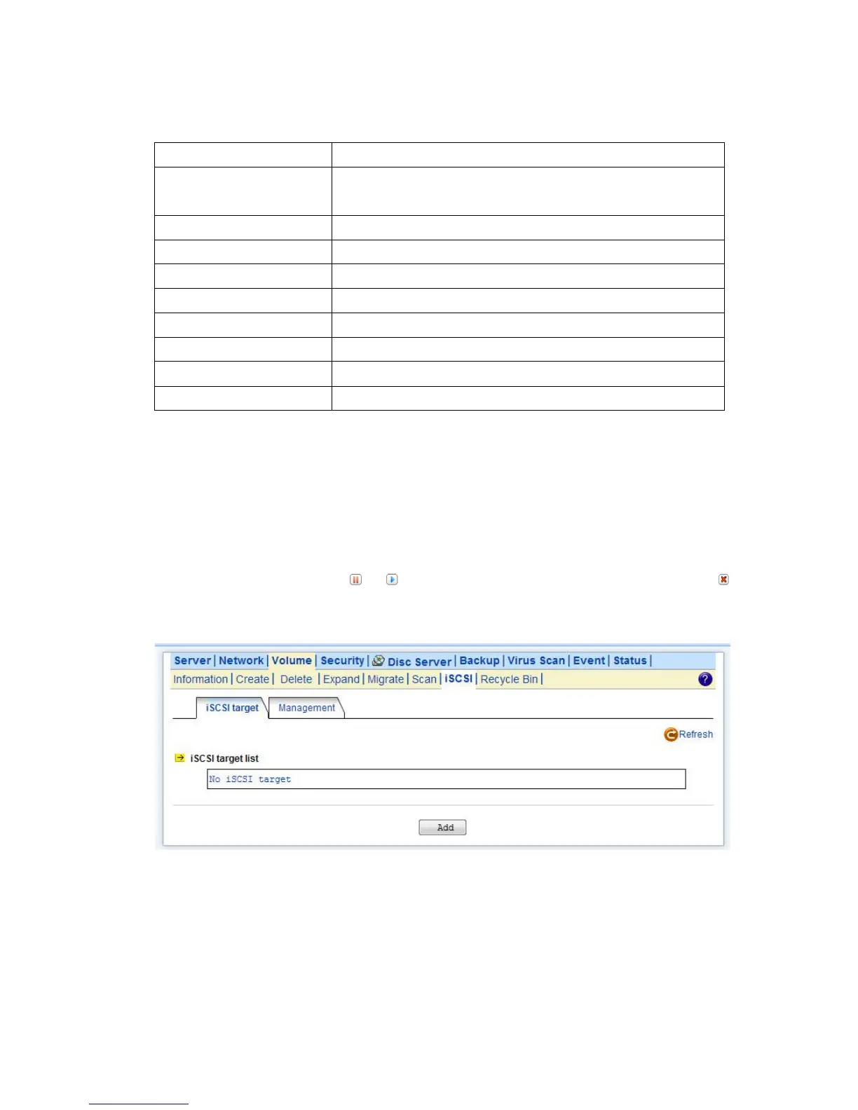 1. Click “iSCSI” tab and Click “Add” to create a iSCSI target on the NAS.