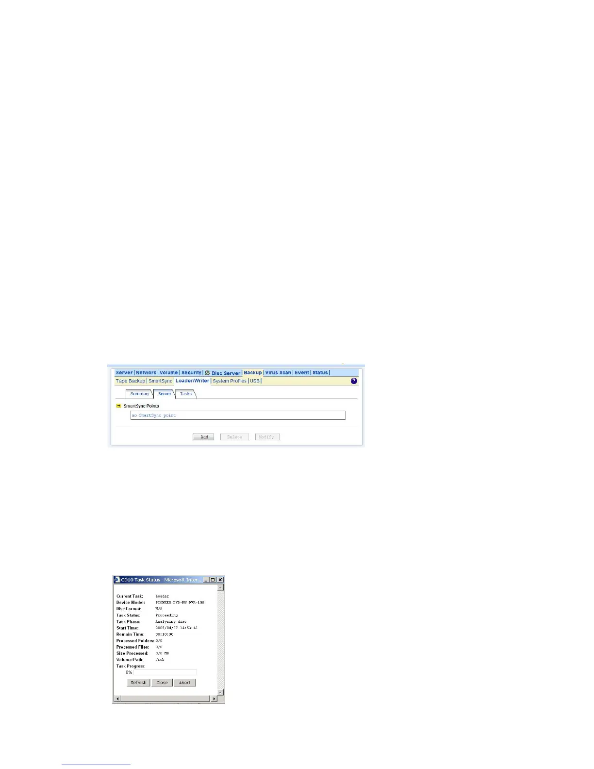 The Loader function copies data from a CD or DVD disc to any location inside the NAS server. This