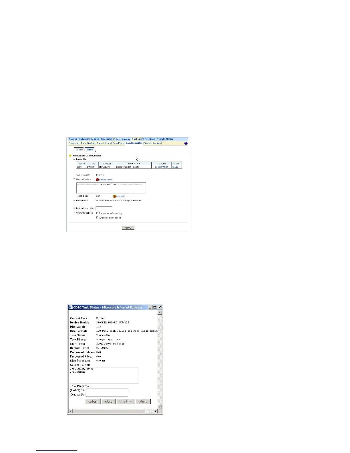 Administration Page and enter the Backup→Loader/Writer page. Then follow the steps below.