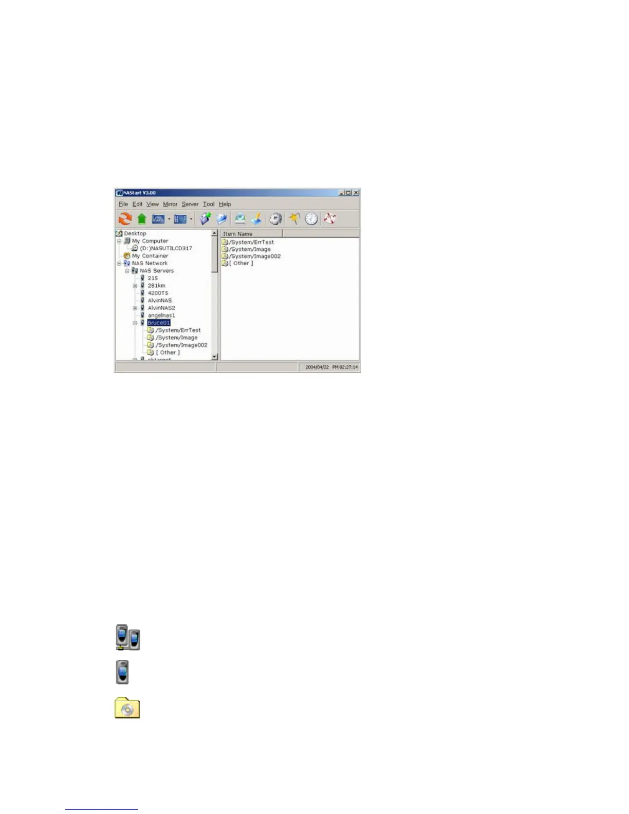 Disc Image Folder: contains disc images of the NAS Server. You can double click to view its content.
