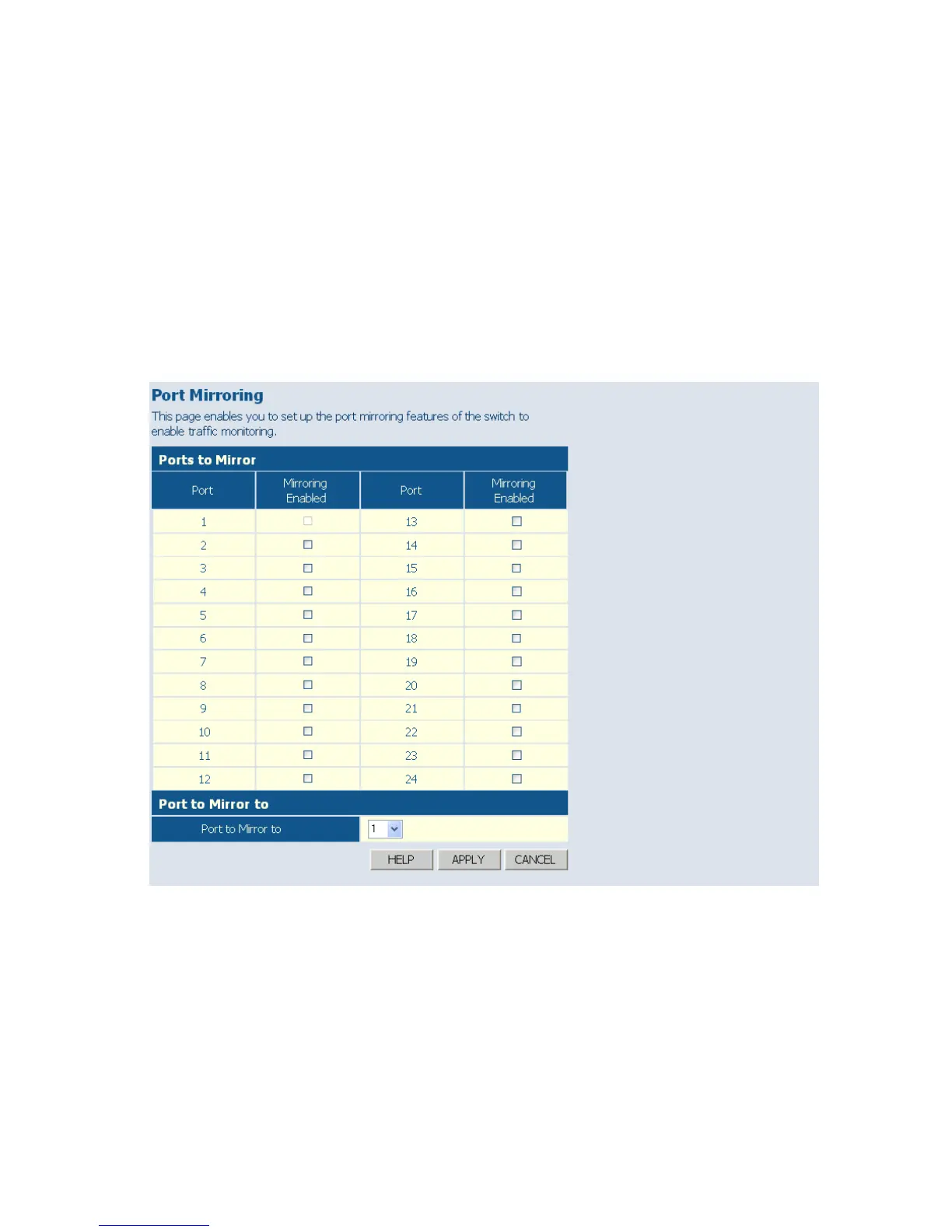 Web – Click PORTS, Port Mirroring.