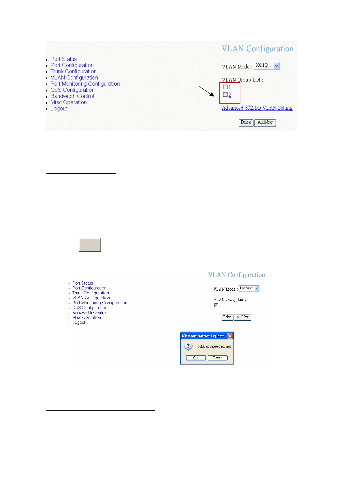 Delete unwanted VLAN group. Deletion steps are same for PortBase and 802.1Q