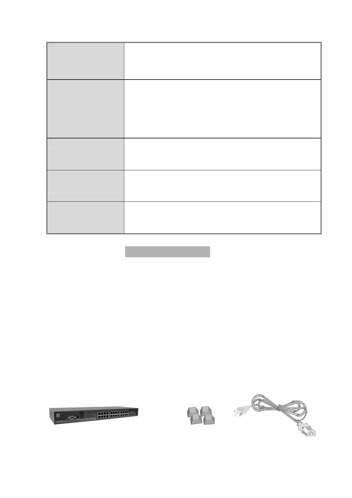 Unpack the contents of GSW-2472TGX and verify them against the checklist