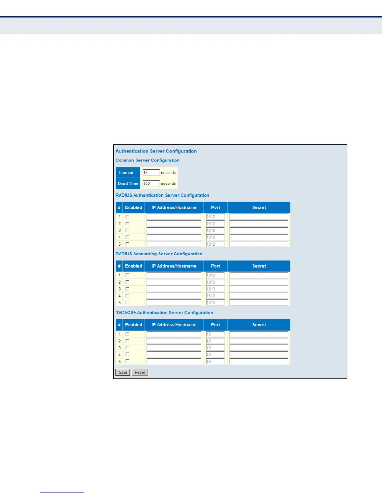 key for each required RADIUS or TACACS+ server.