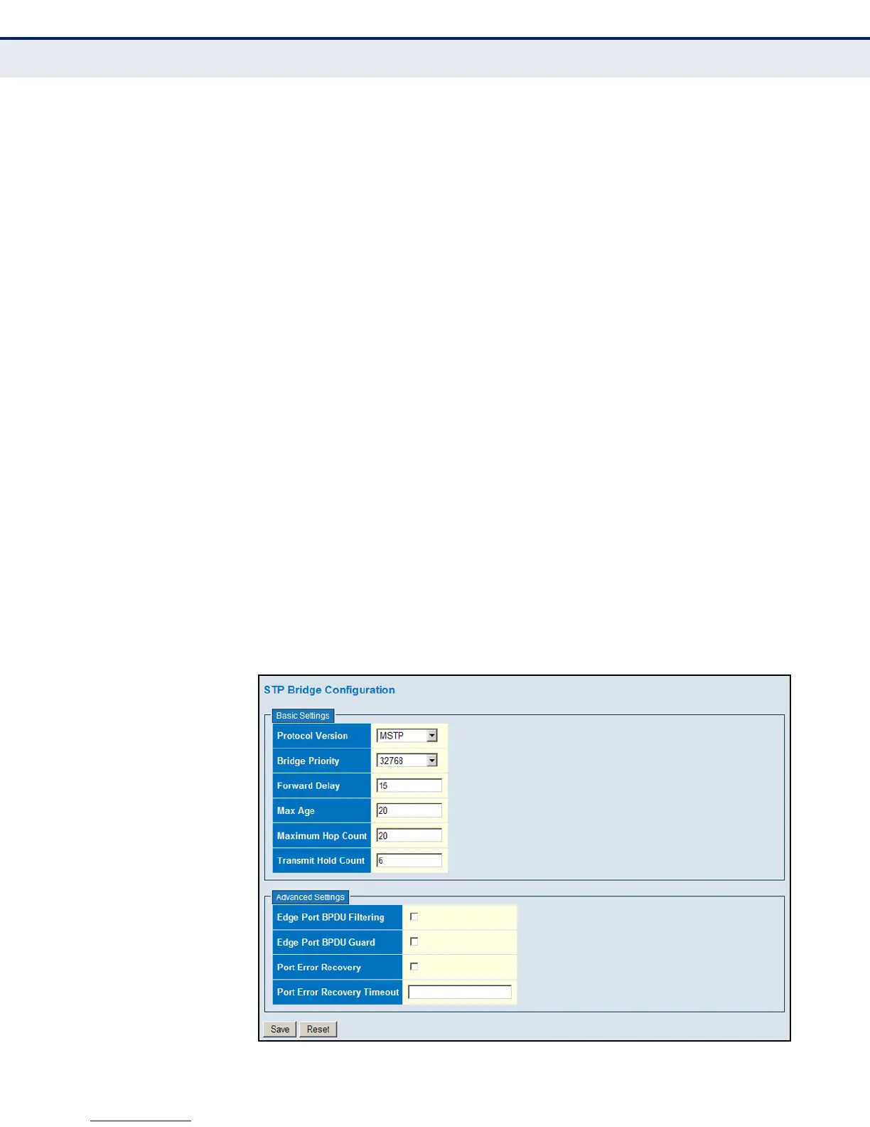 1. Click Configuration, Spanning Tree, Bridge Settings.