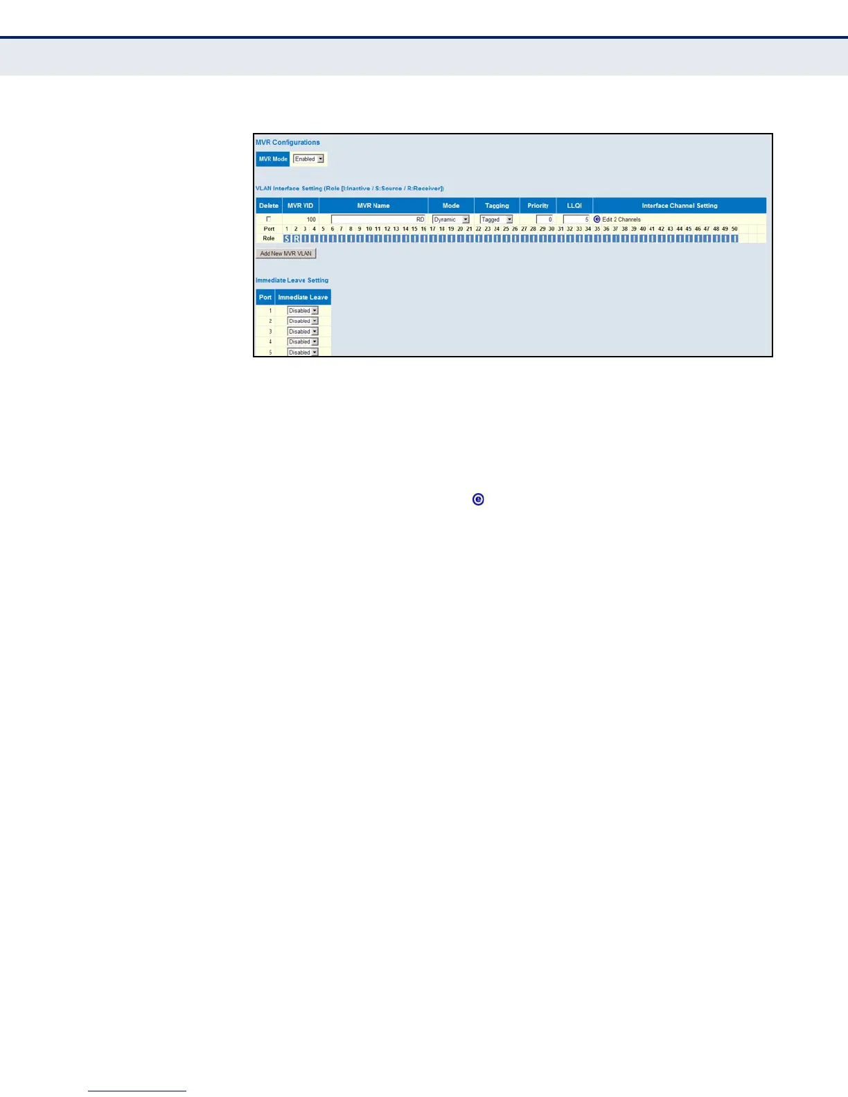 ◆ Use the Navigate Channel Setting fields to specify the MVR VLAN and