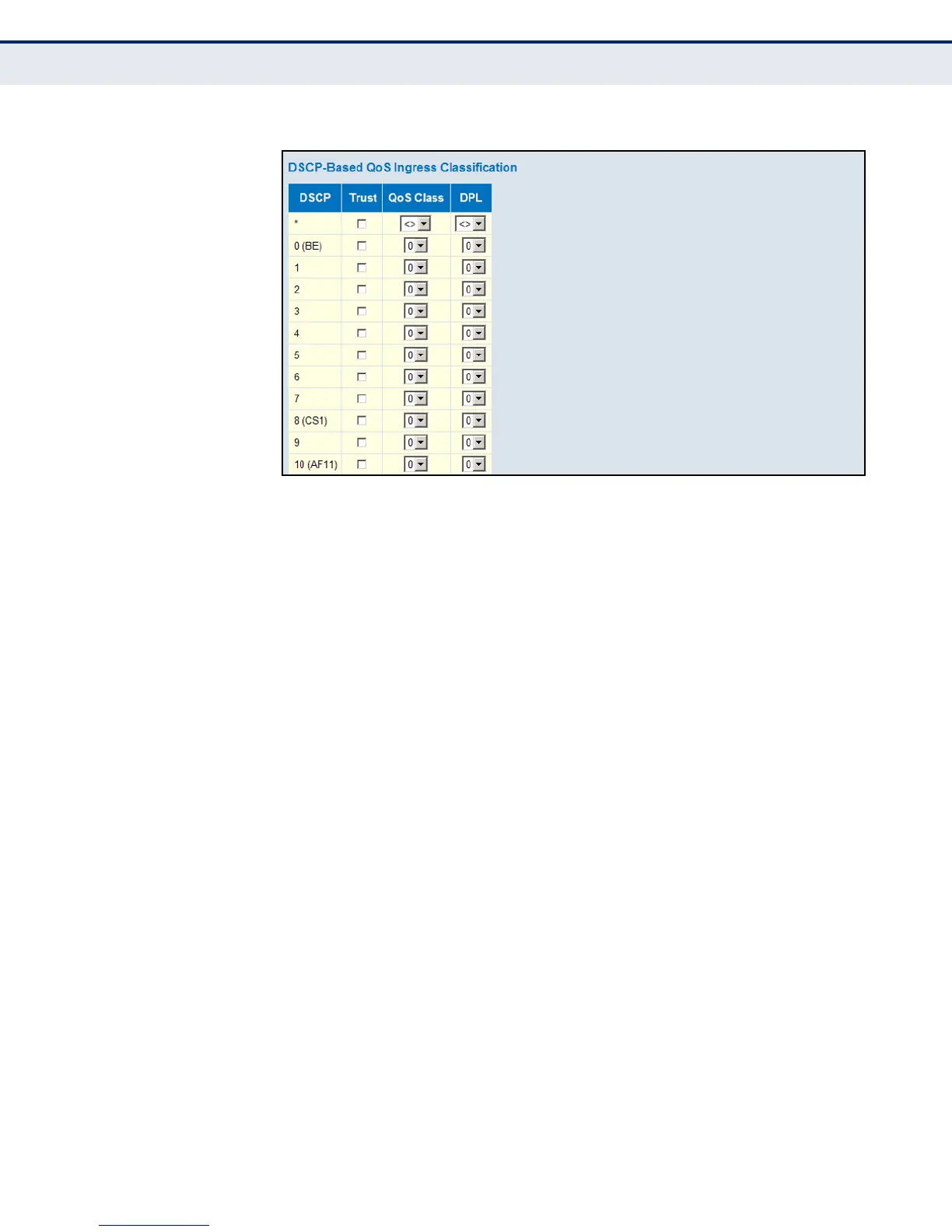 Use the DSCP Translation page to configure DSCP translation for ingress