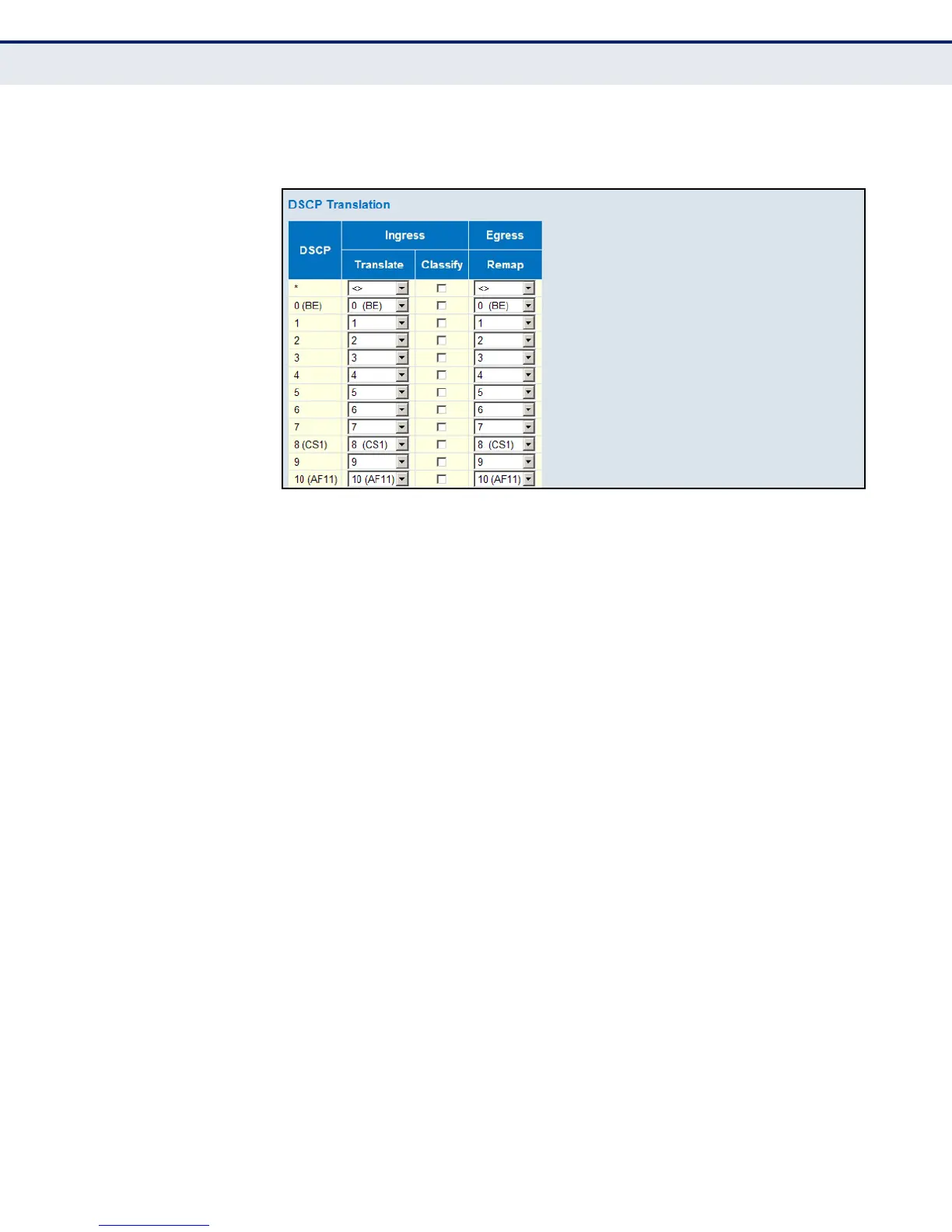 Use the DSCP Classification page to map DSCP values to a QoS class.