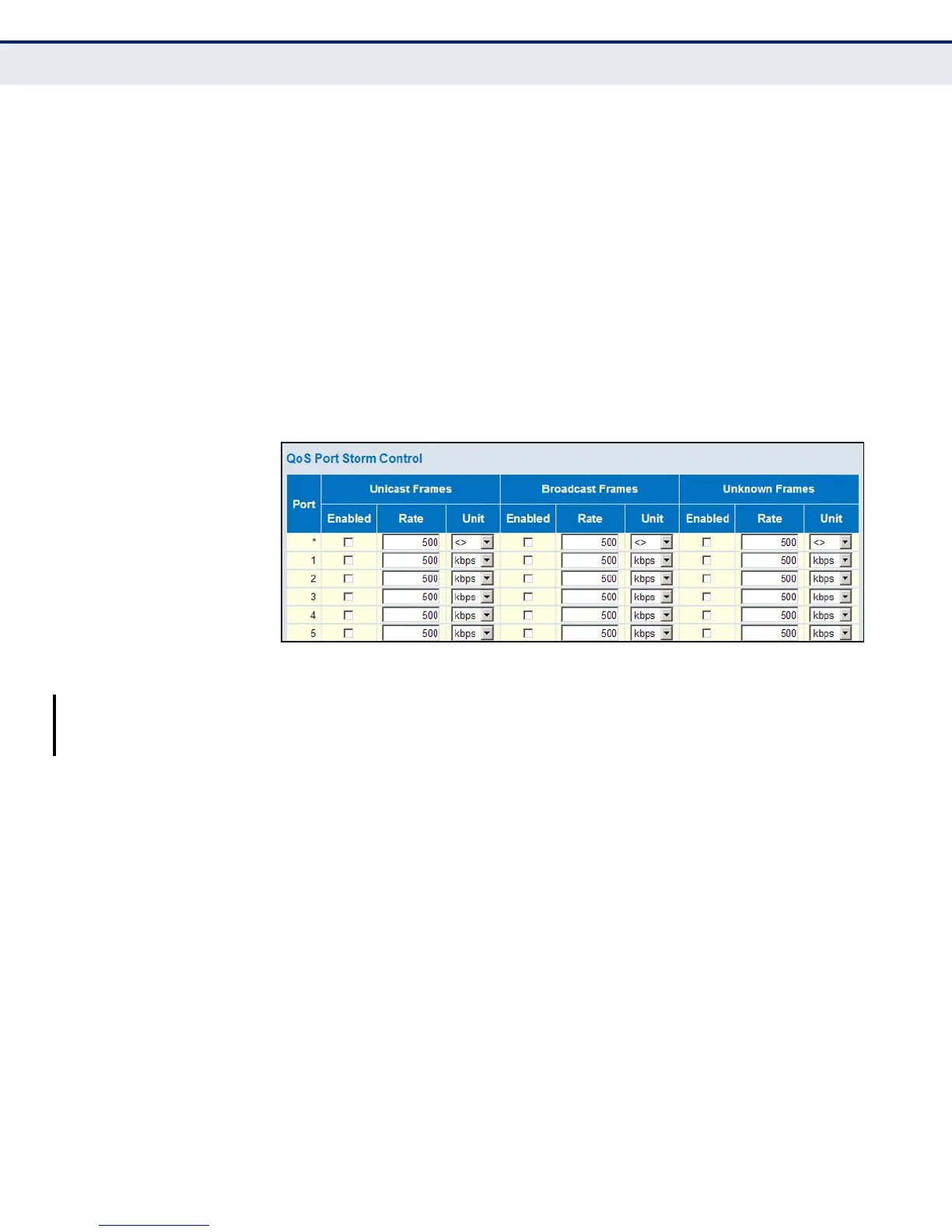 2. Enable storm control for unicast, broadcast, or unknown traffic by
