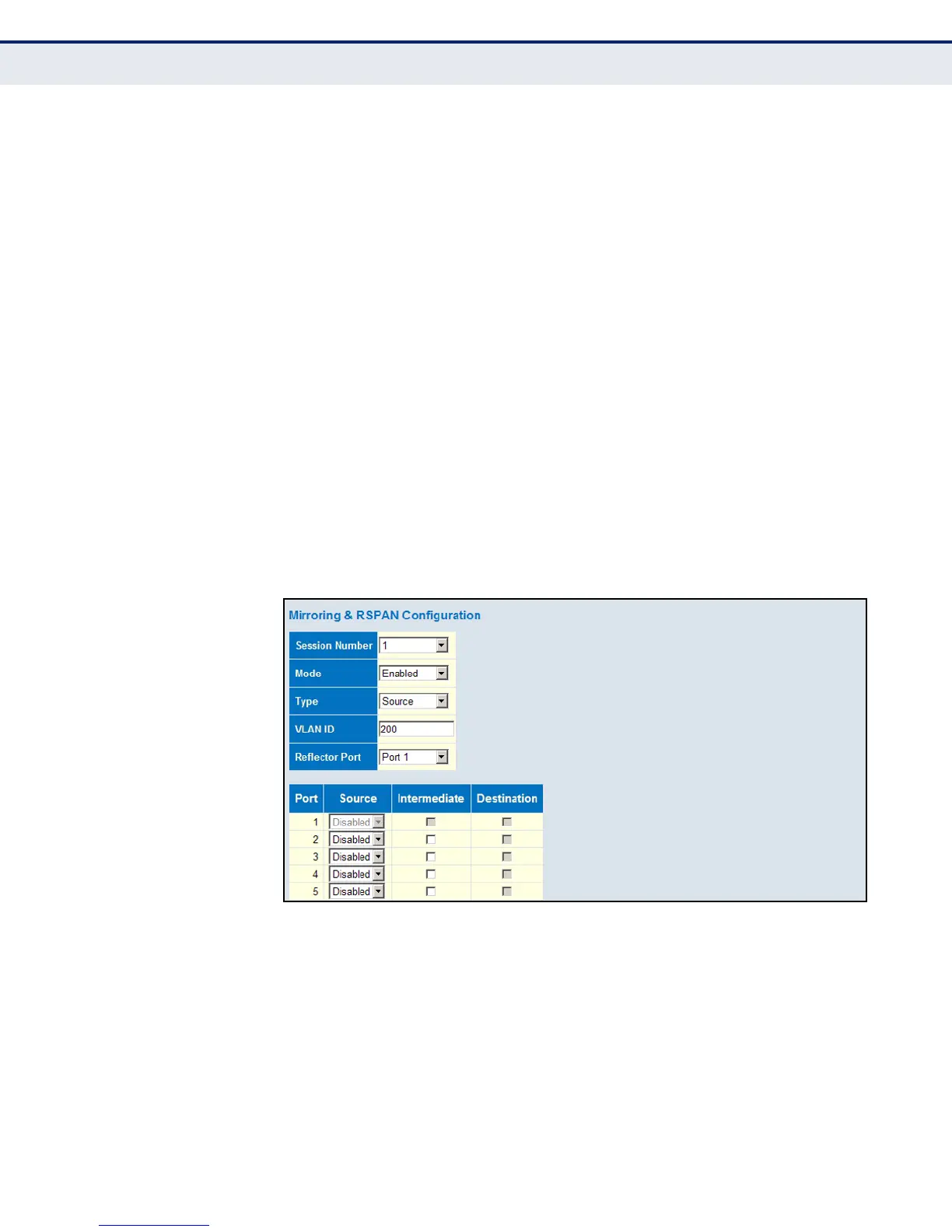 mirrored from source ports. A destination port can be configured on