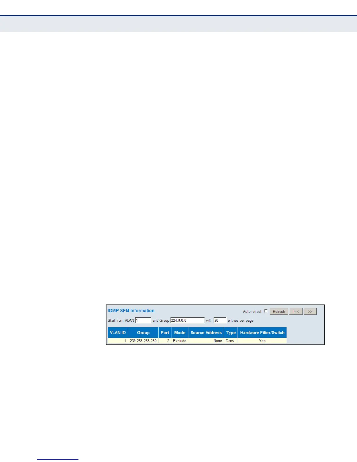 Use the IGMP SFM Information page to display IGMP Source-Filtered