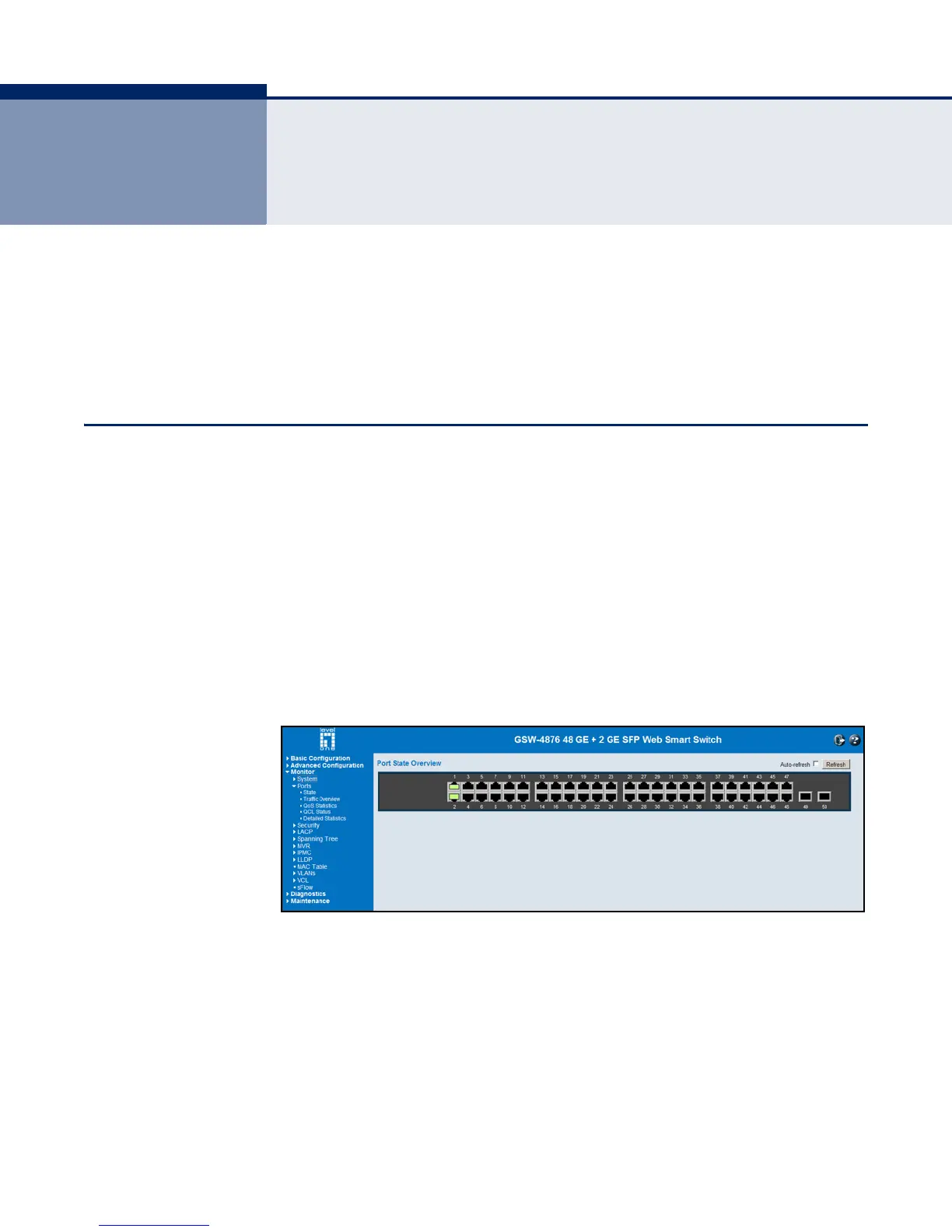 HOME PAGE When your web browser connects with the switch’s web agent, the home