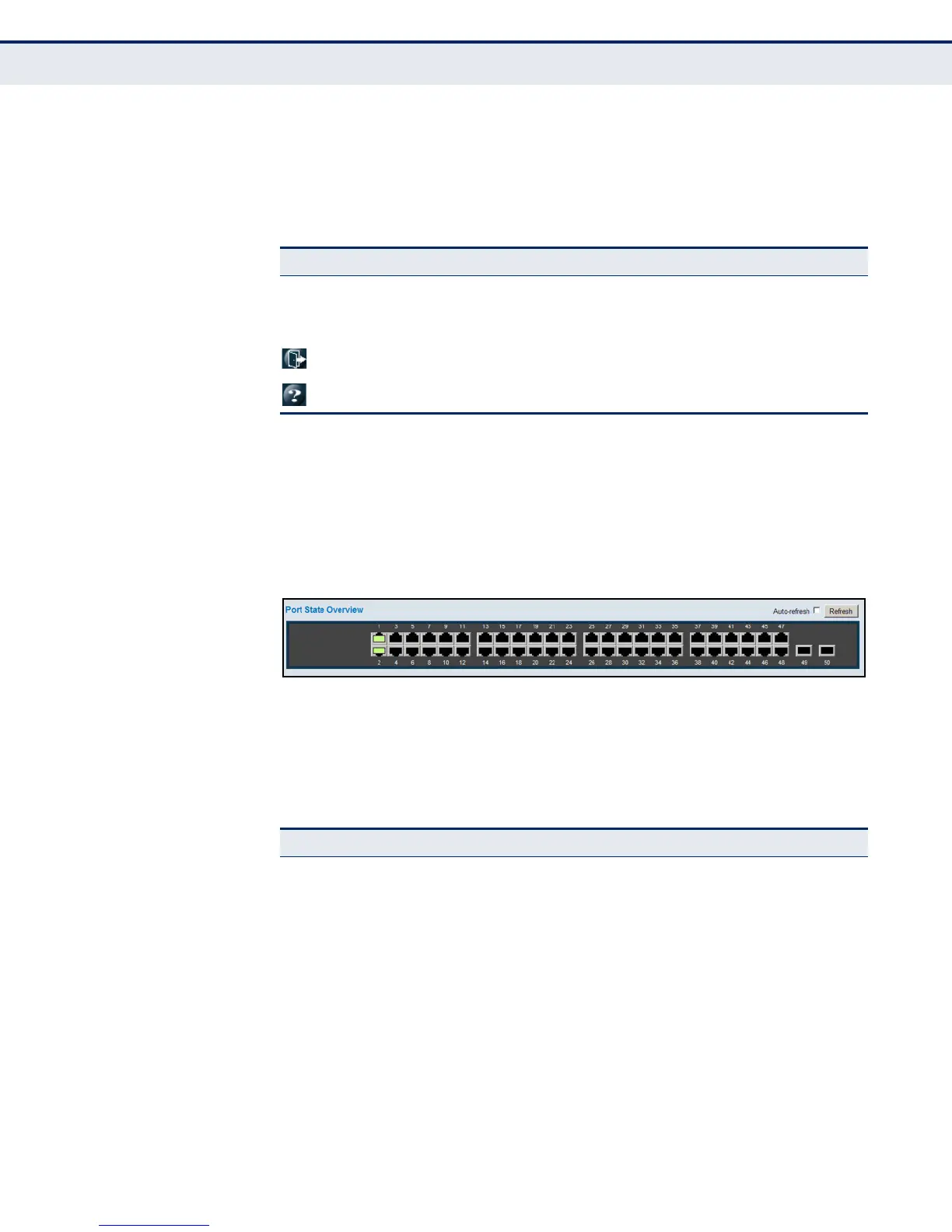 PANEL DISPLAY The web agent displays an image of the switch’s ports. The refresh mode is