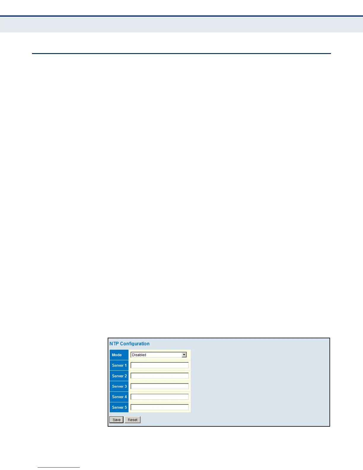 Use the NTP Configuration page to specify the Network Time Protocol (NTP)