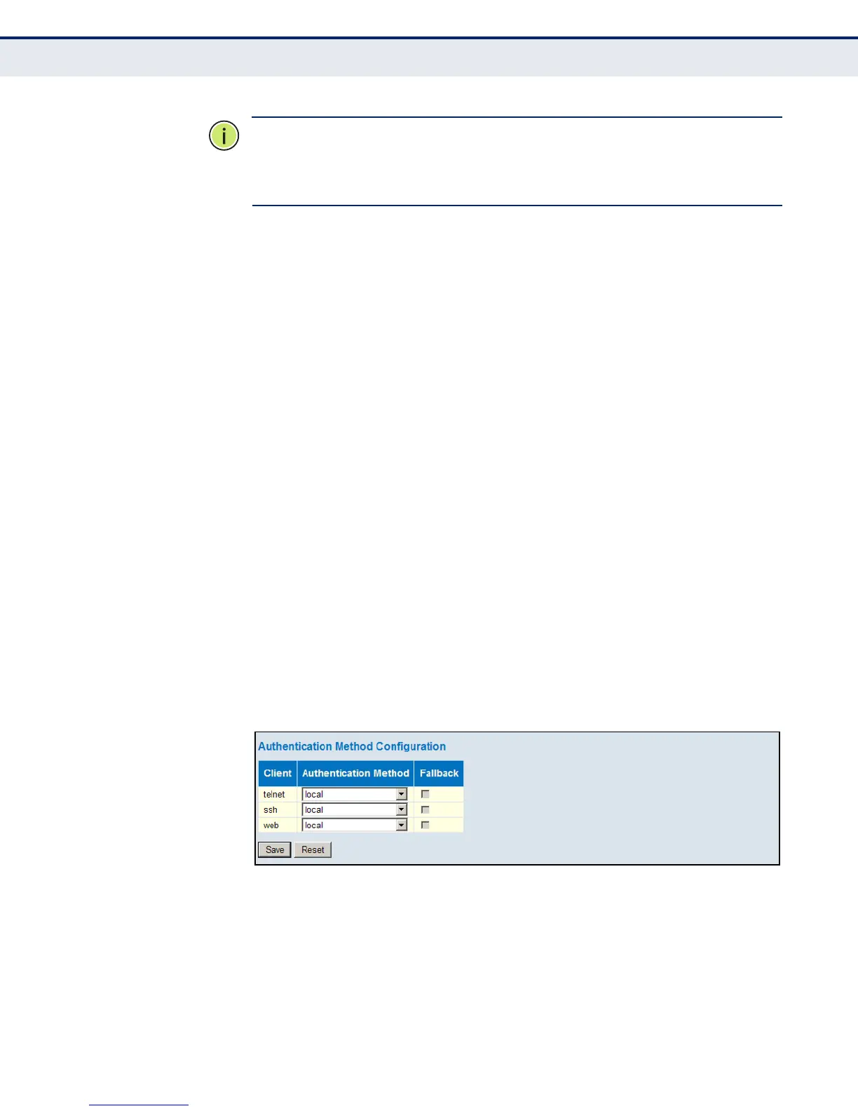 (Options: None, Local, RADIUS, TACACS+; Default: Local)