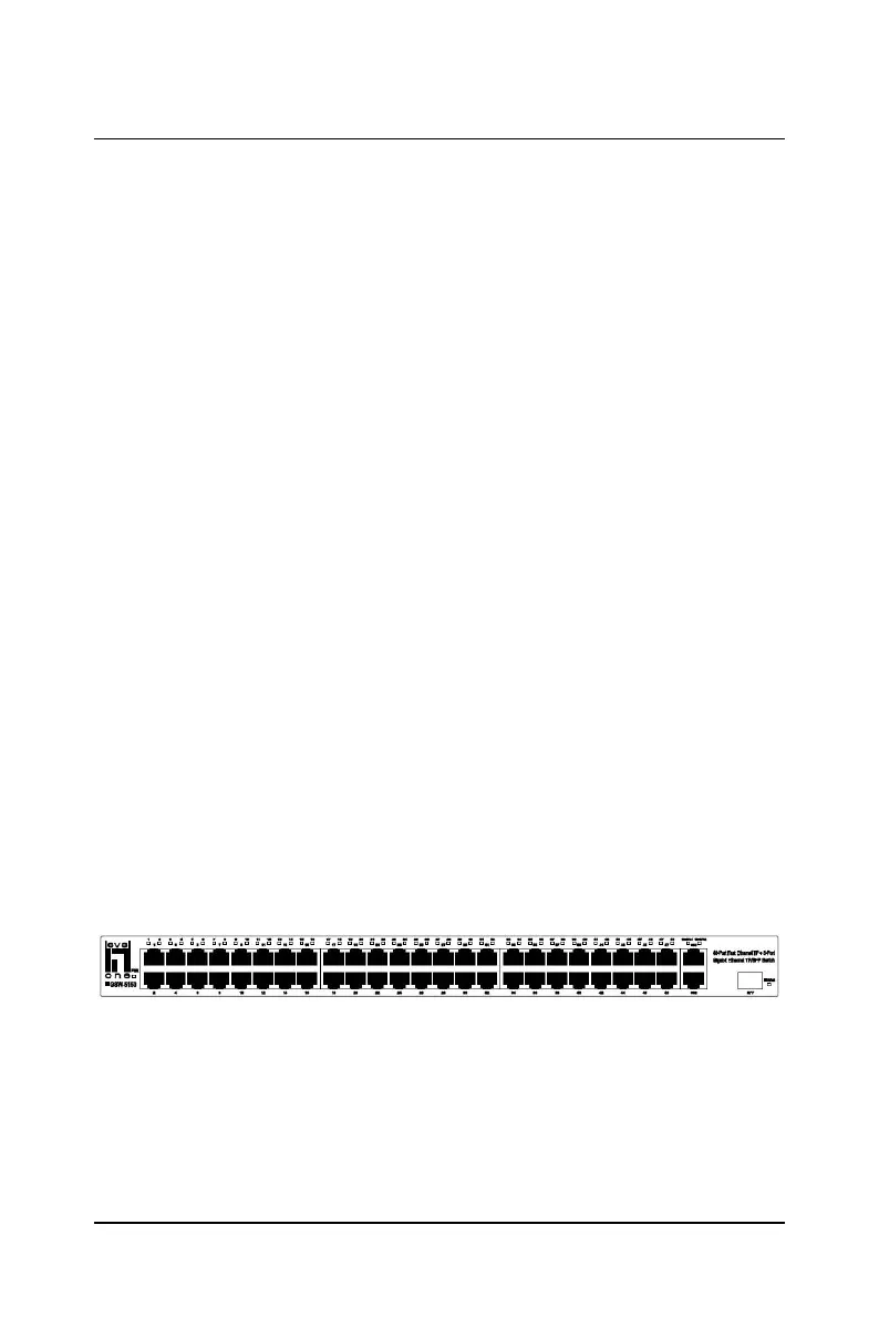The front panel of the GSW-5150 consists of switch LED indicators, 48