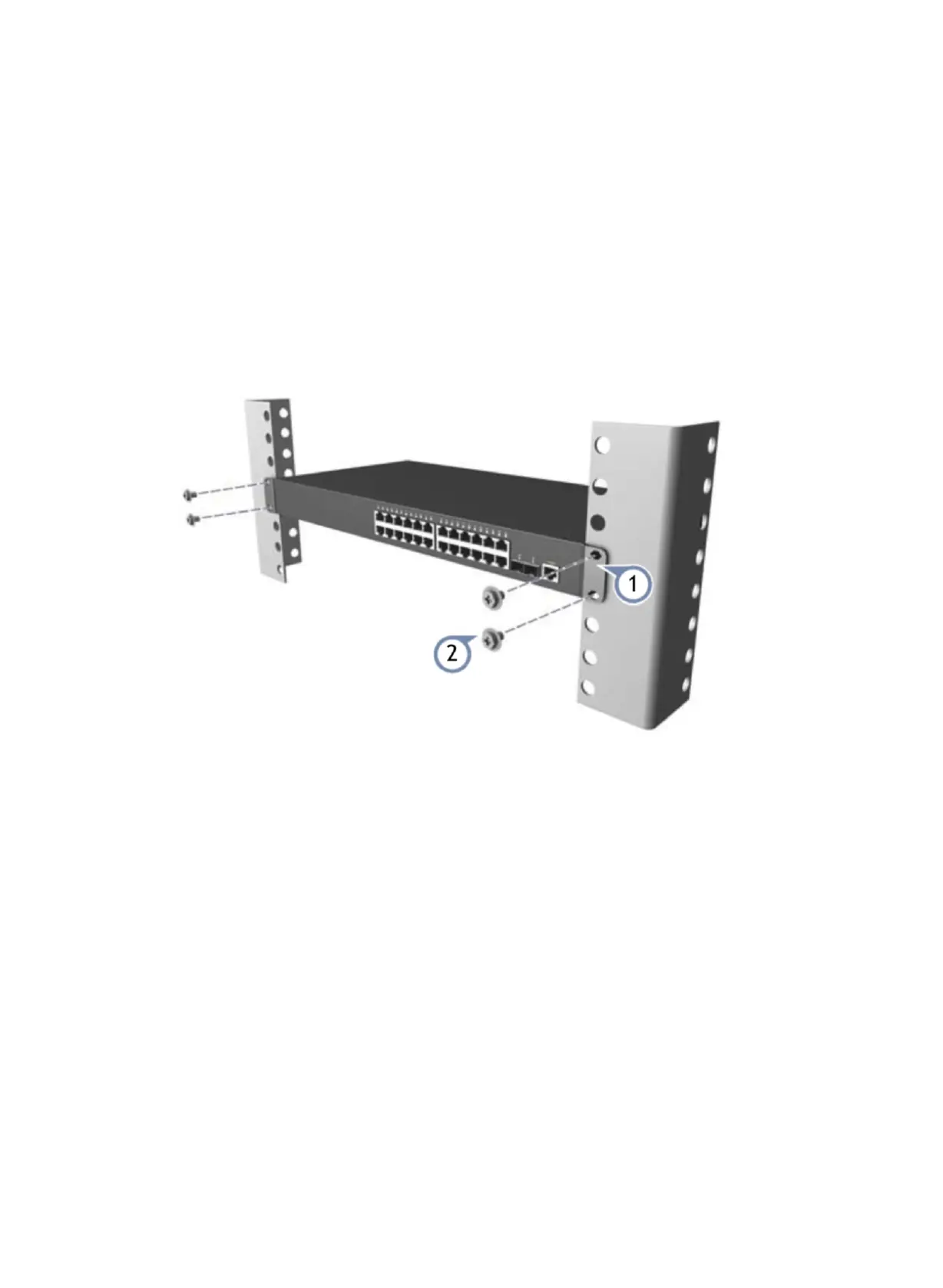 Instale o comutador num bastidor padrão com 19 polegadas, seguindo os passos de instalação