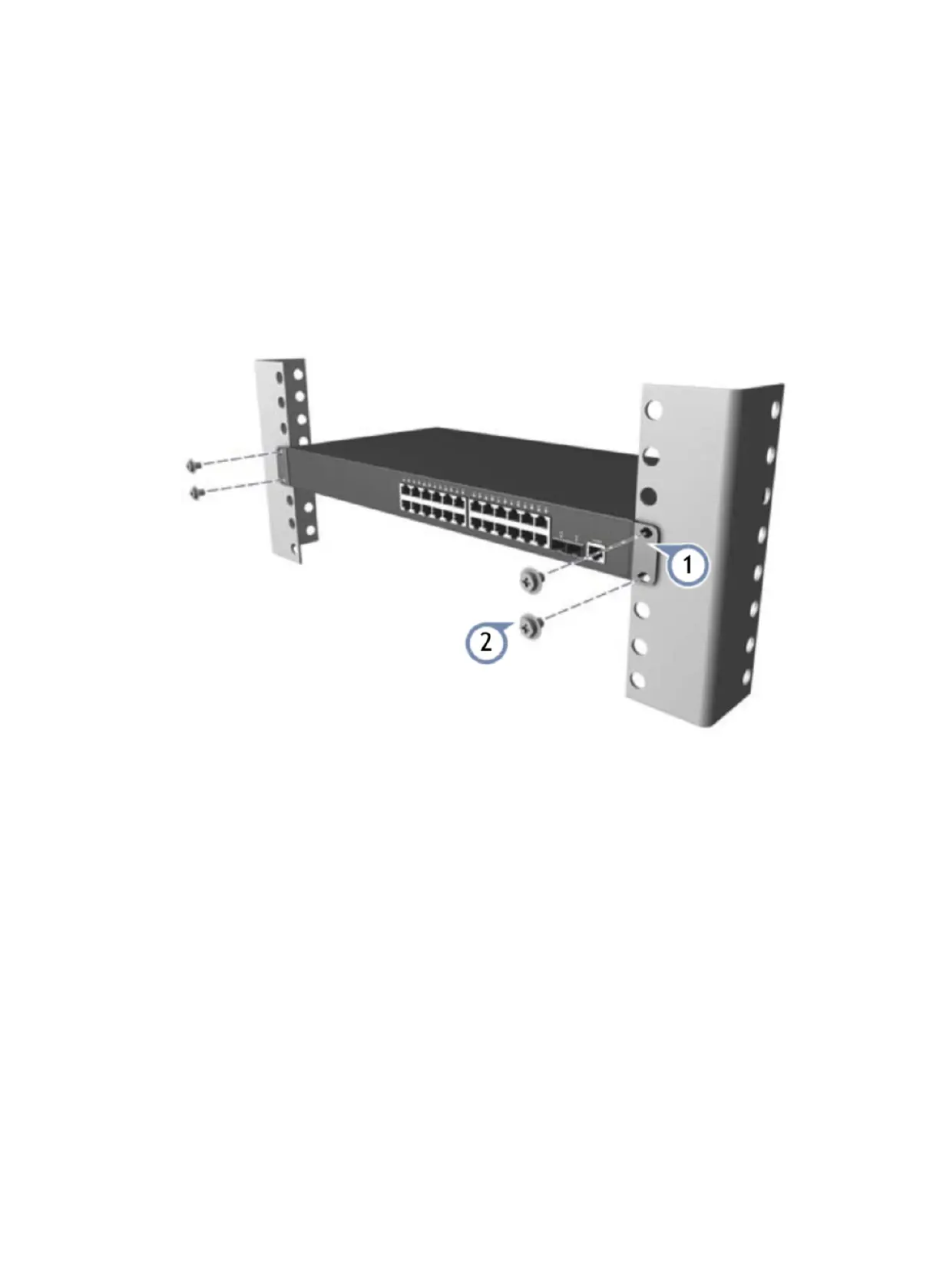 Install the switch on a 19-inch standard rack, and the installation steps are as follows: