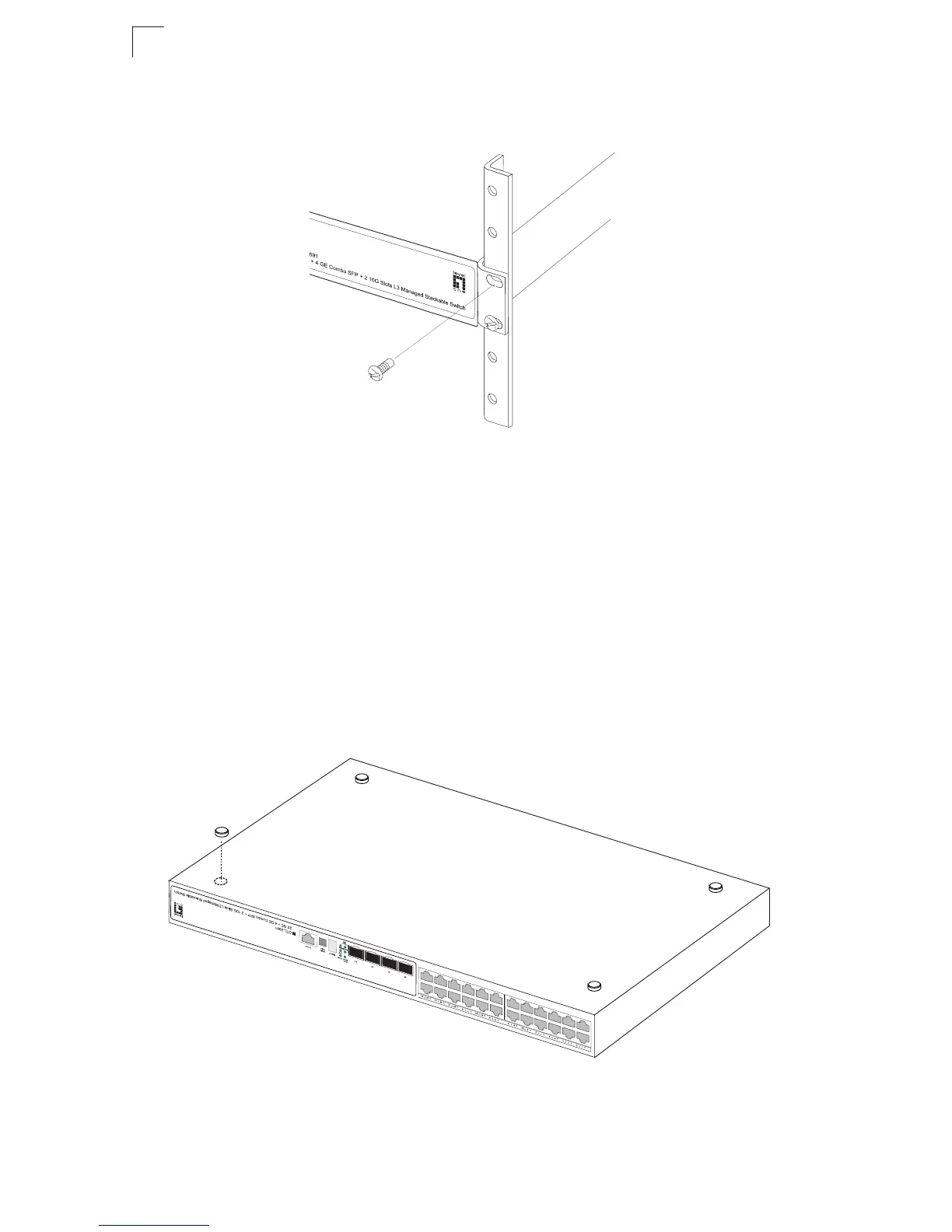 4. If installing multiple switches, mount them in the rack, one below the other, in