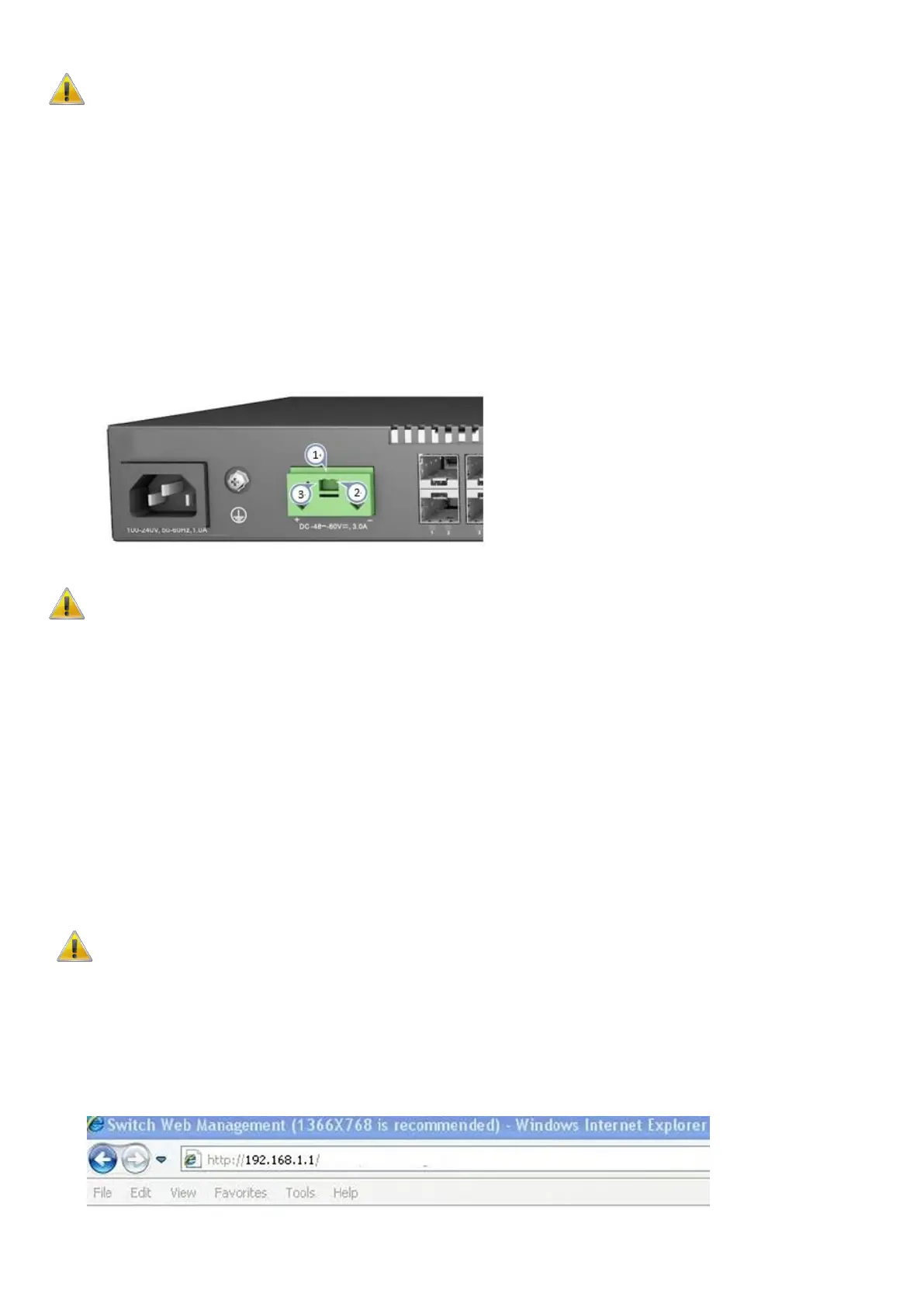 Warning: Before wiring the DC plug or connecting power to the switch, ensure that power to the
