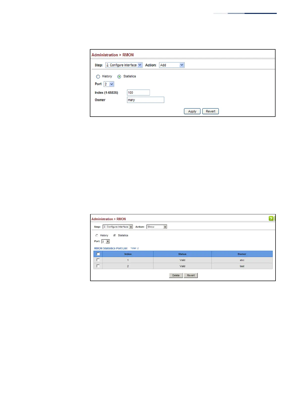 Figure 286: Configuring an RMON Statistical Sample