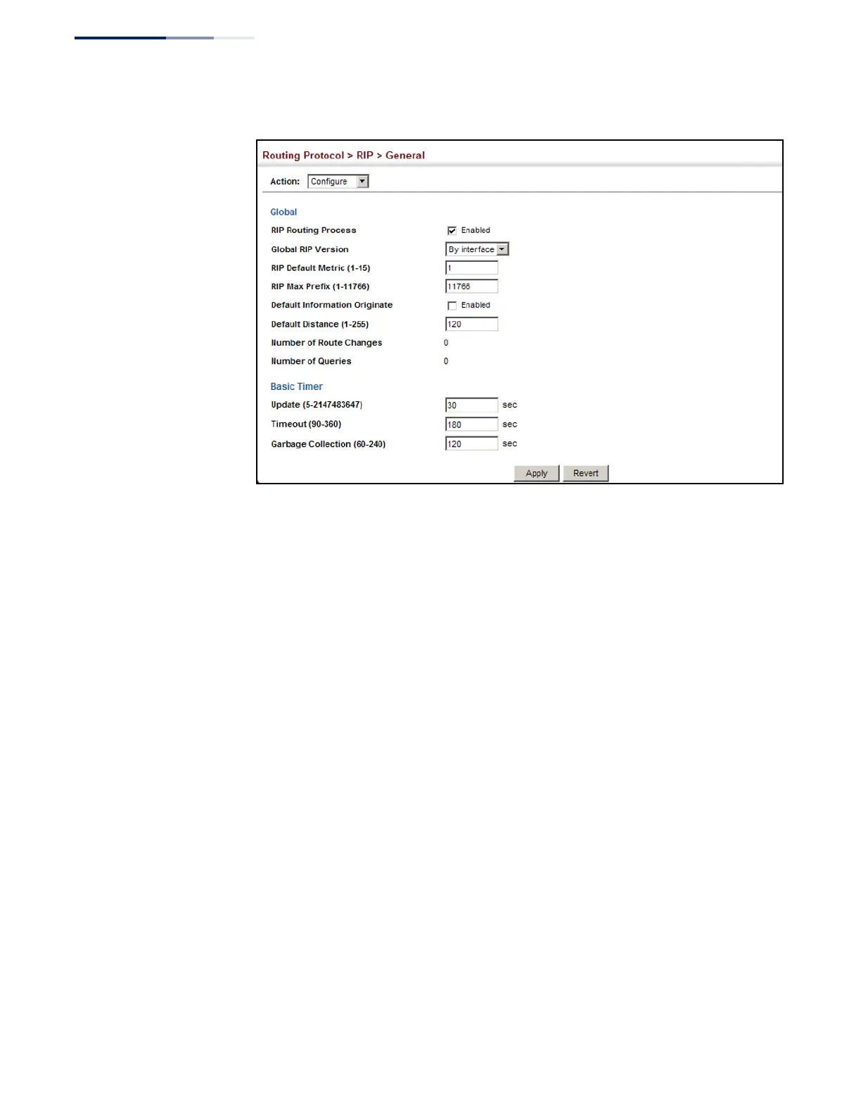 Use the Routing Protocol > RIP > General (Clear Route) page to clear entries from