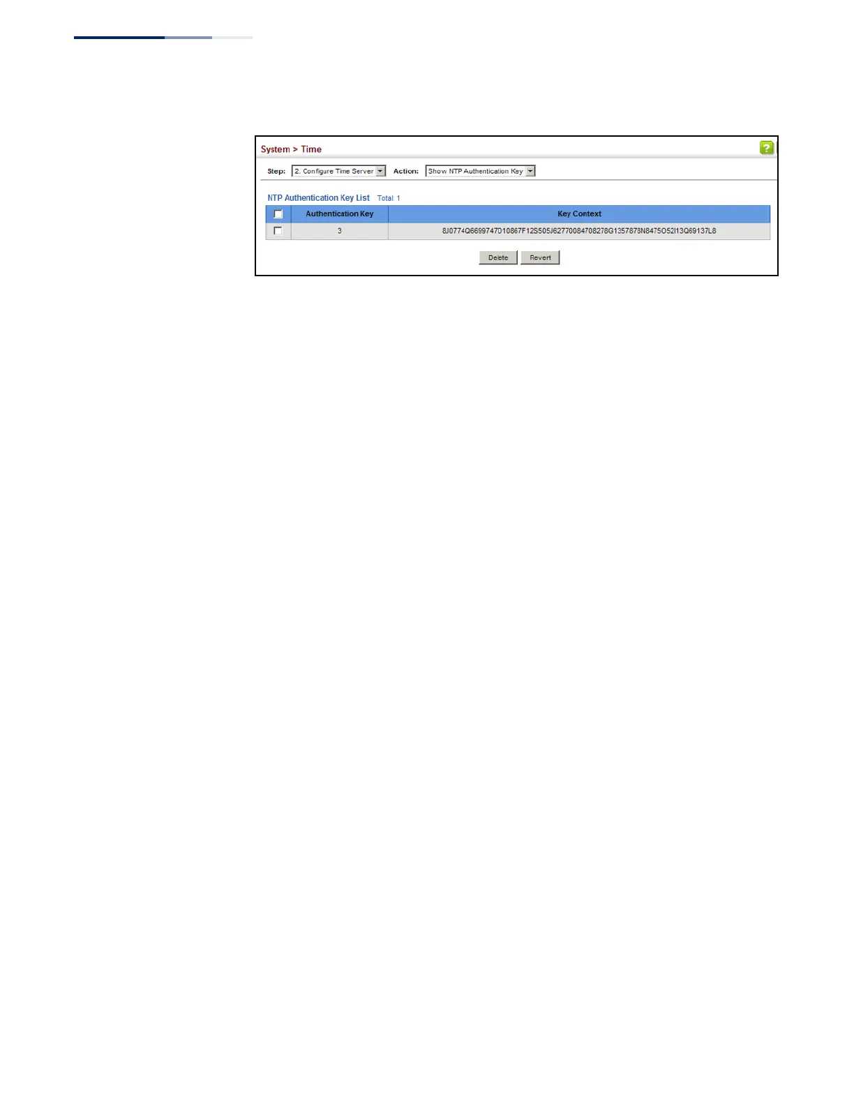 Figure 19: Showing the NTP Authentication Key List