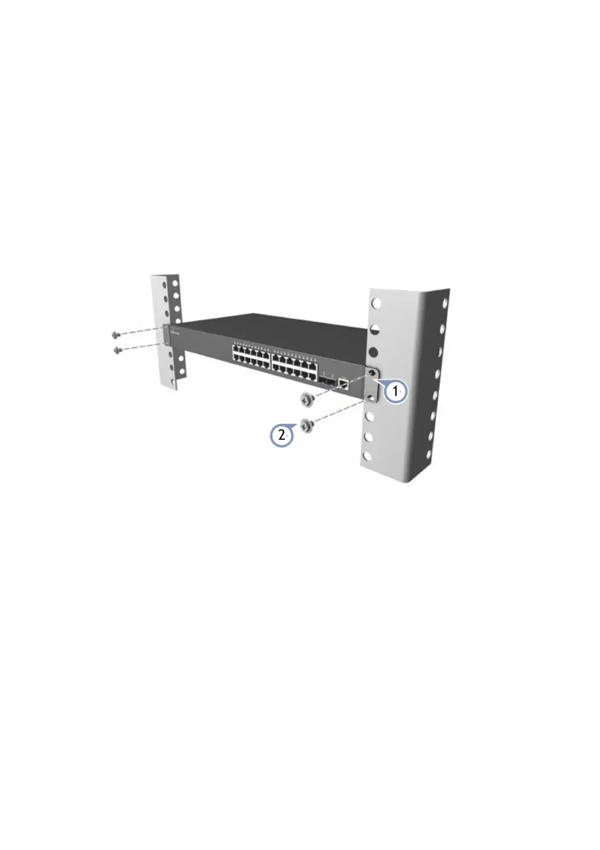 Instale el conmutador en un bastidor estándar de 19 pulgadas y siga los pasos de instalación