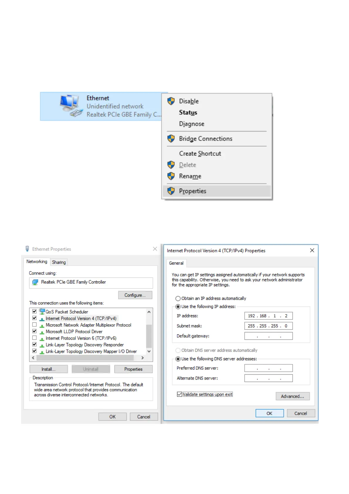 O endereço IP do computador deve estar entre o seguinte intervalo de endereços IP livres 192.168.1.2 ~