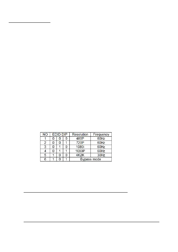 “EDID DIP”, fare riferimento alla tabella di seguito. “0”