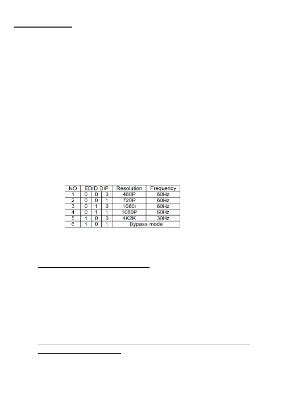 below. Adjust “EDID DIP” switch, refer to table below. “0”